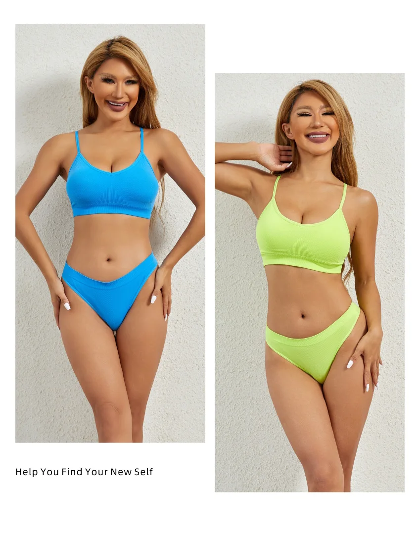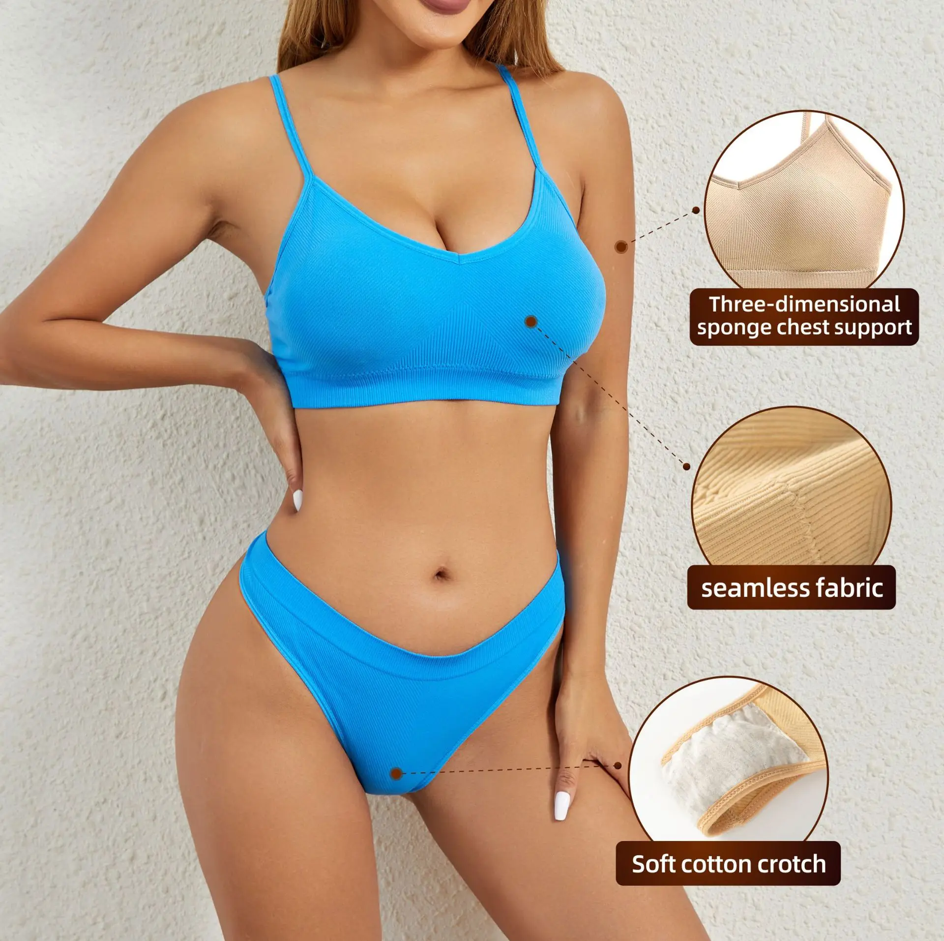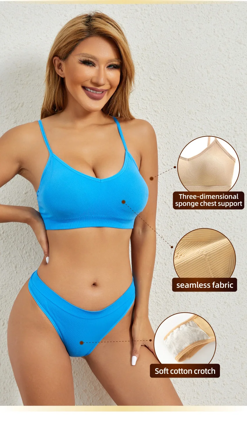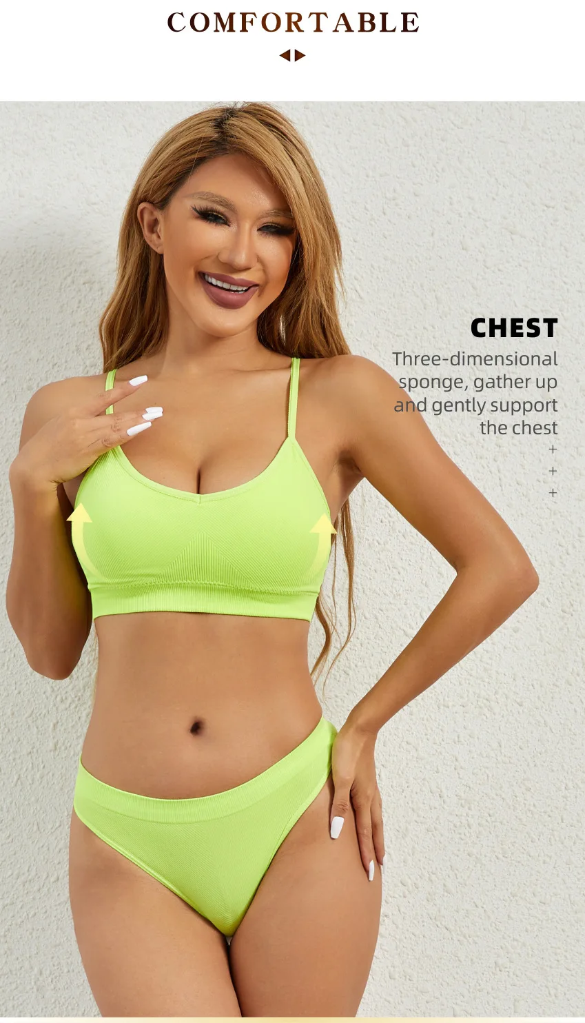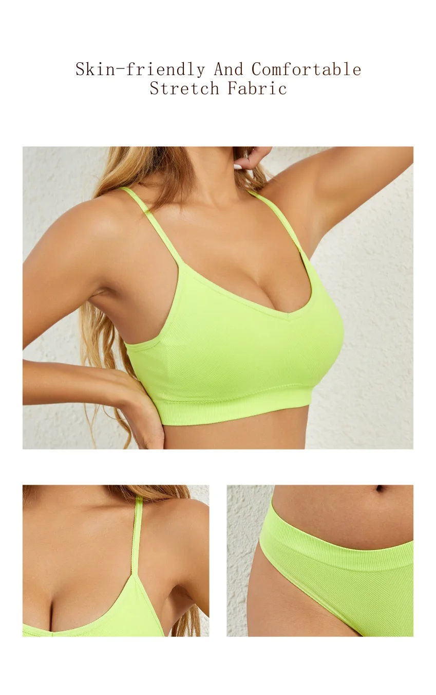 1Set Womens Sexy Underwear Set Wireless Lingerie Panties Set Female Sexy Seamless Tank Crop Top Lady Sports Fitness Yoga Bra Set
