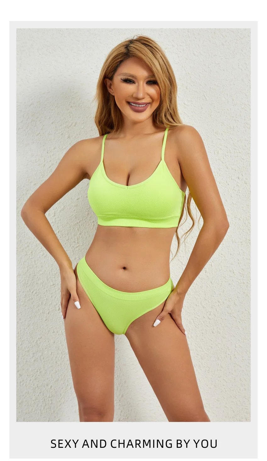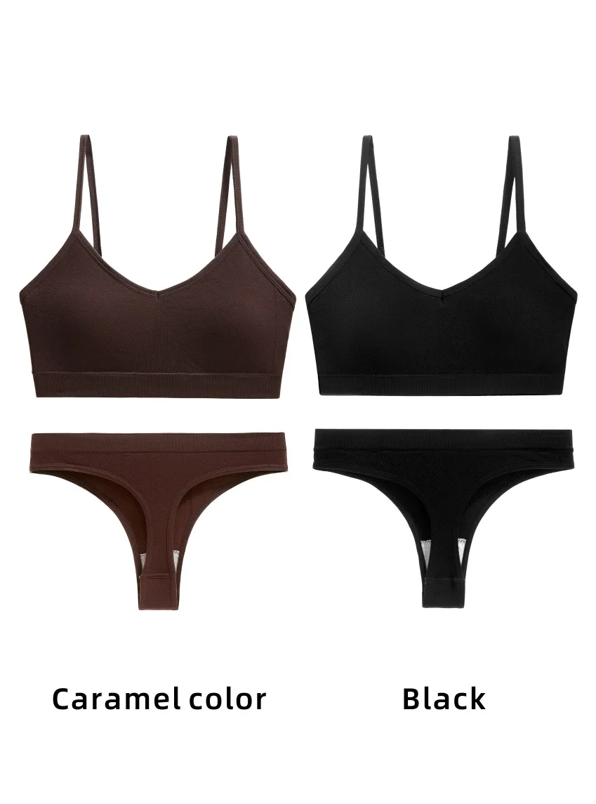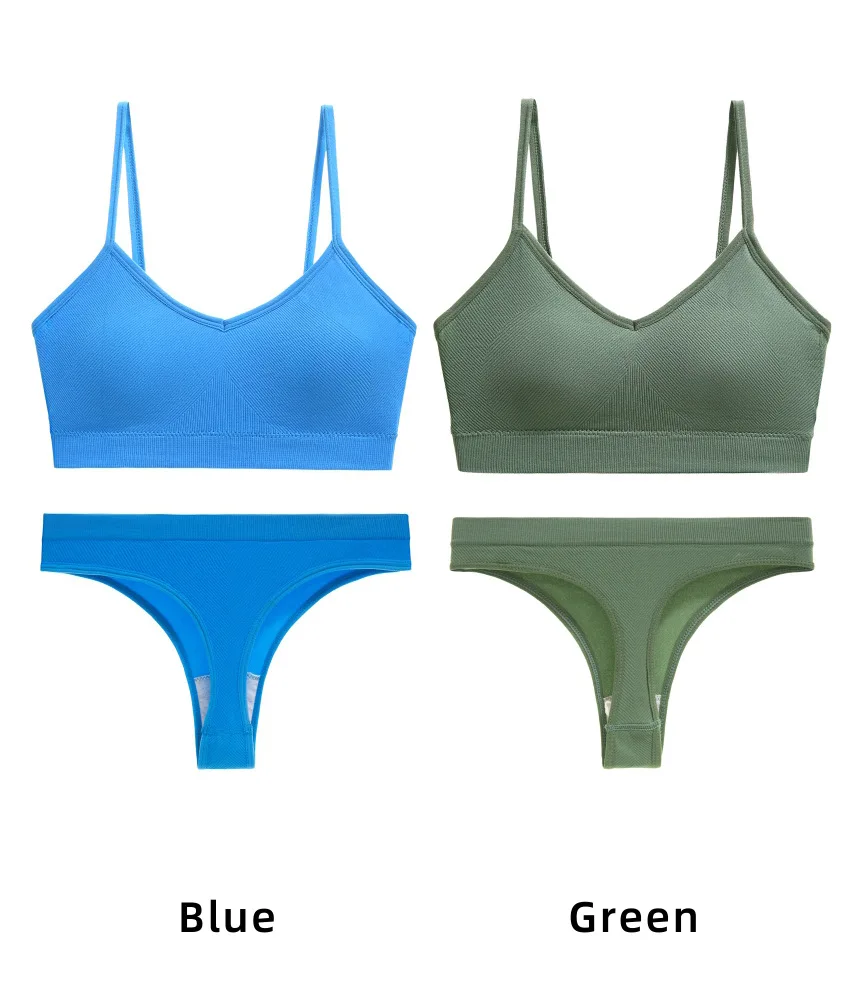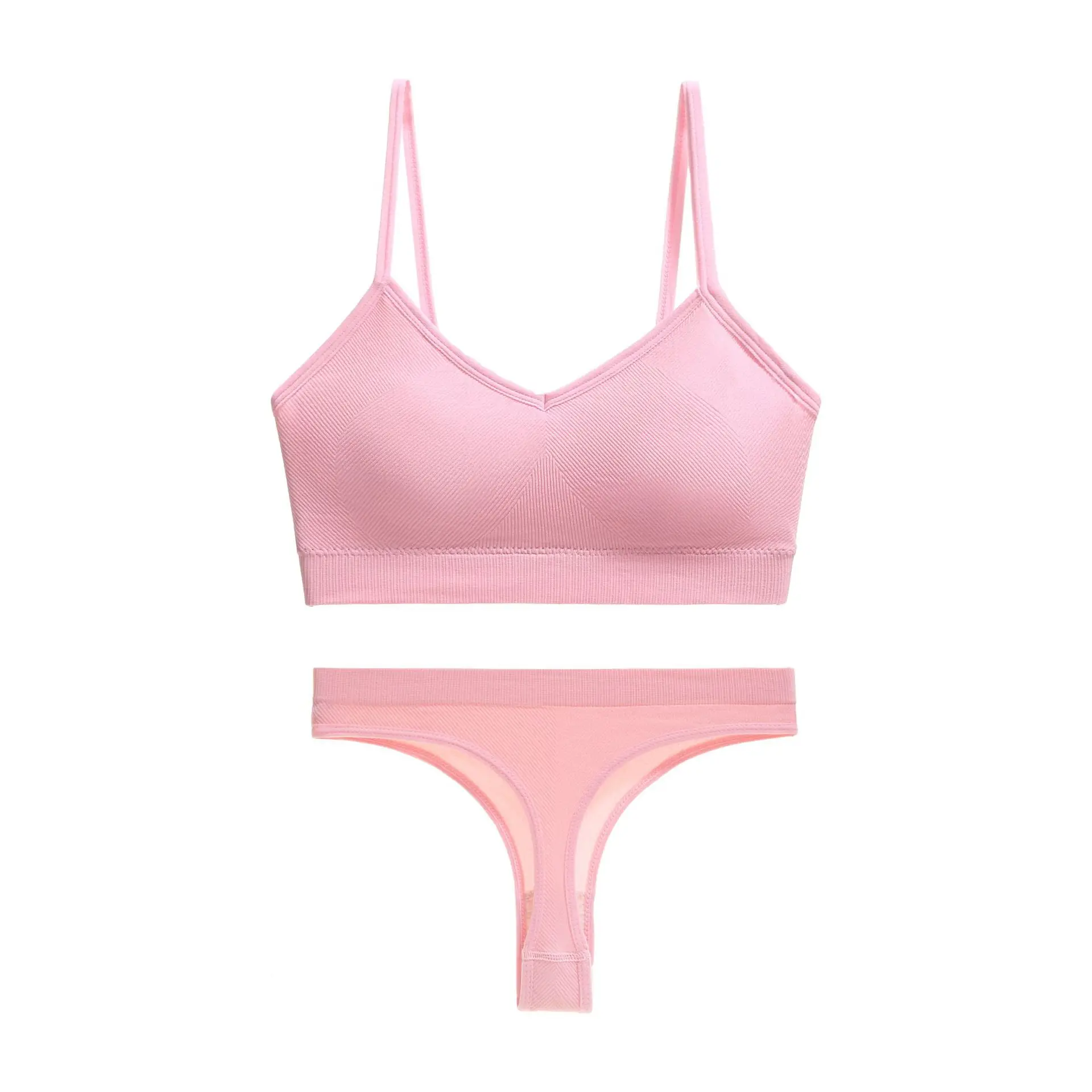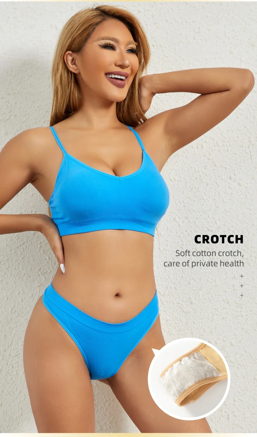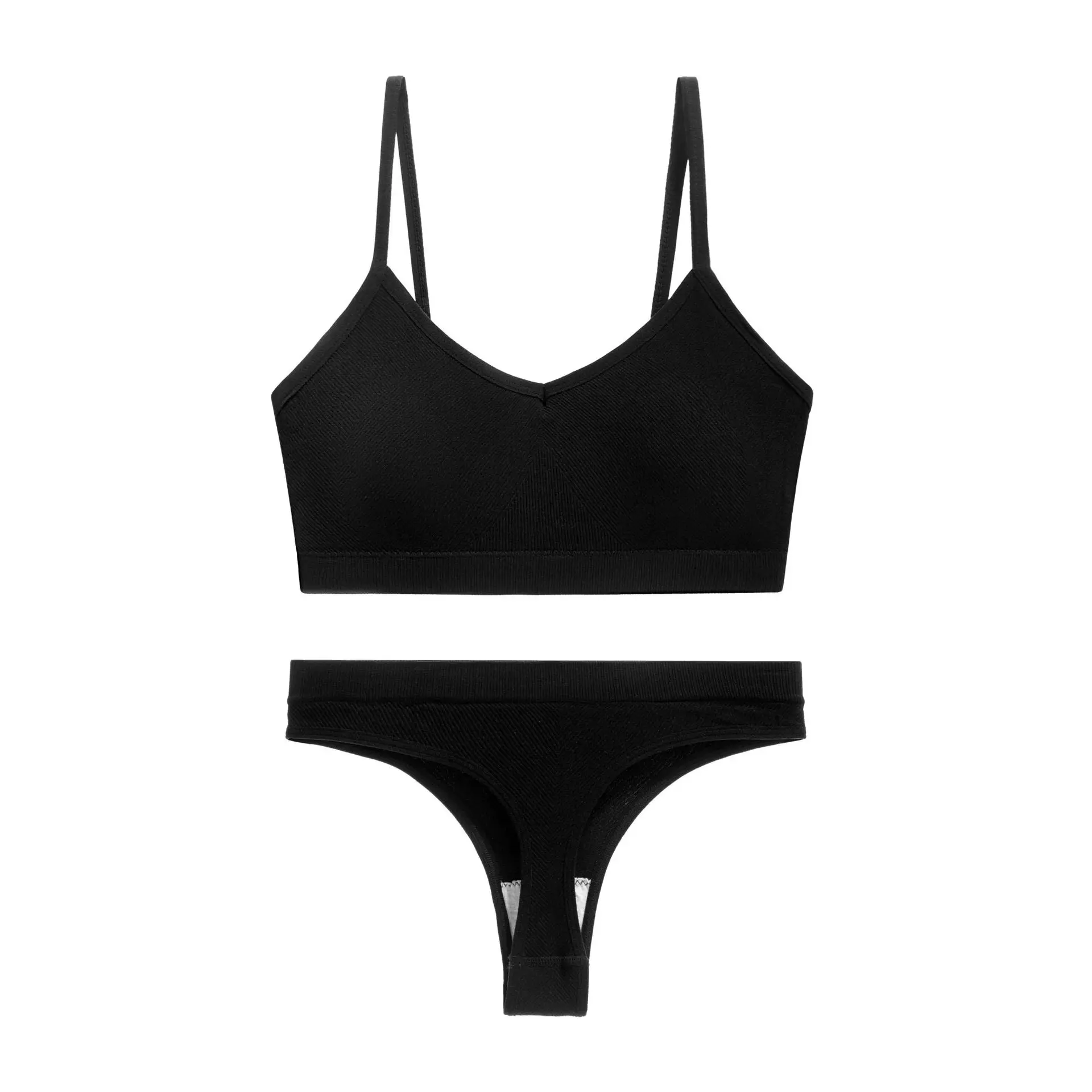 1Set Womens Sexy Underwear Set Wireless Lingerie Panties Set Female Sexy Seamless Tank Crop Top Lady Sports Fitness Yoga Bra Set