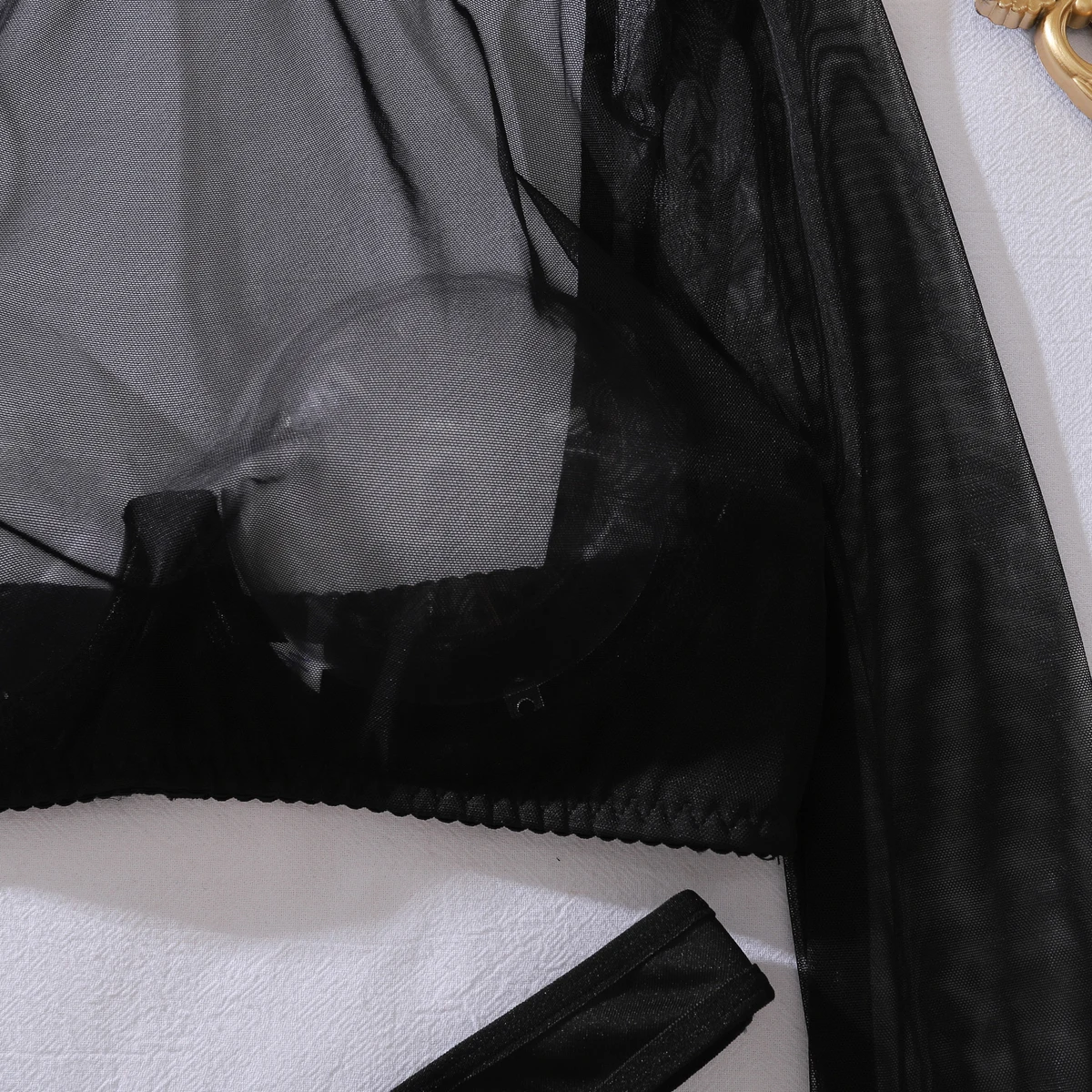 2025 new comfortable see through long sleeved sheer shaping and backless sexy lingerie split set with stockings