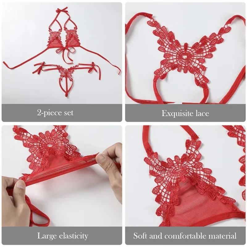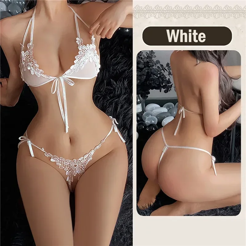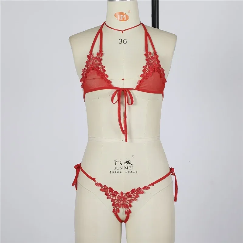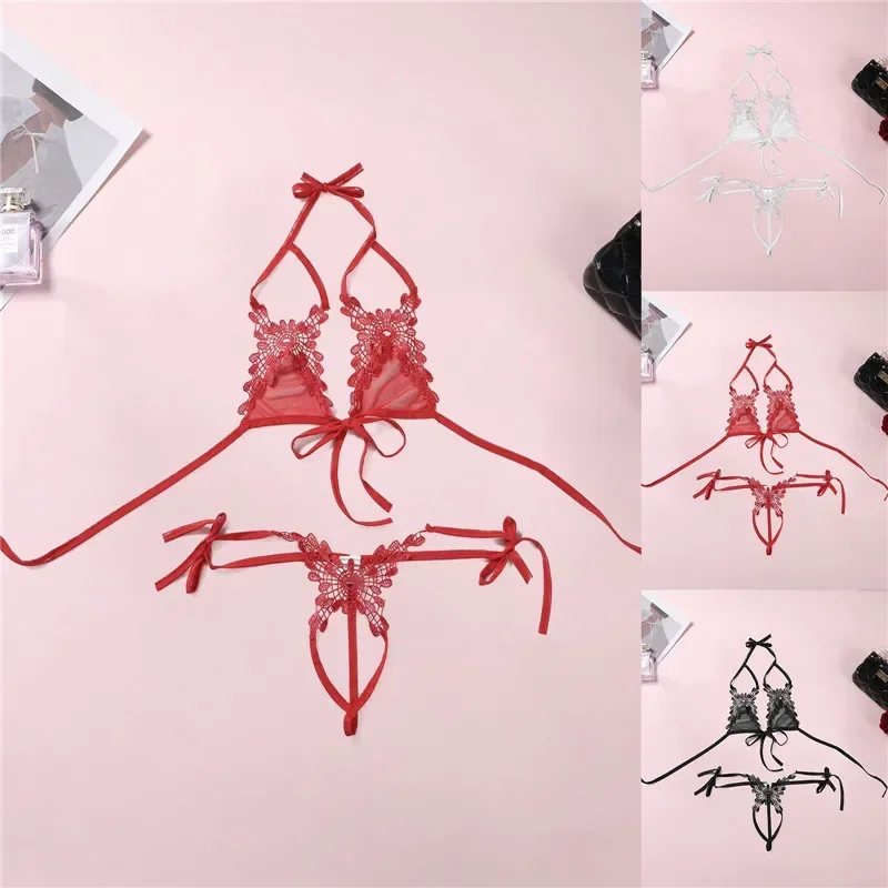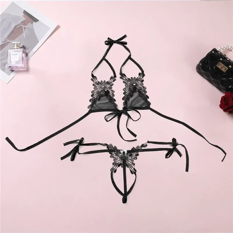 2025 New Sexy Lingerie Bra Set Woman 3 Pcs Transparent Women’s Lace Panties Erotic Beautiful Bra And Thong And Set Long Stocking