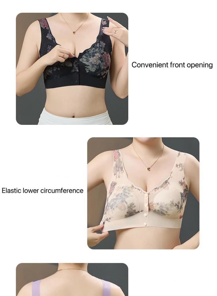 - Comfortable Front Button Bras: Female Printed Lingerie