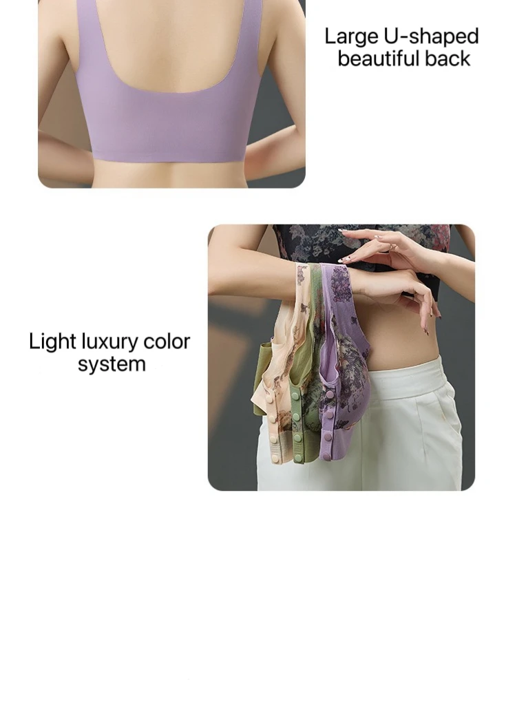 2pcs Women Ice Silk Comfortable Front Button Bras Lady Fashion Vest Brassiere Women’s Wireless Underwear Female Printed Lingerie