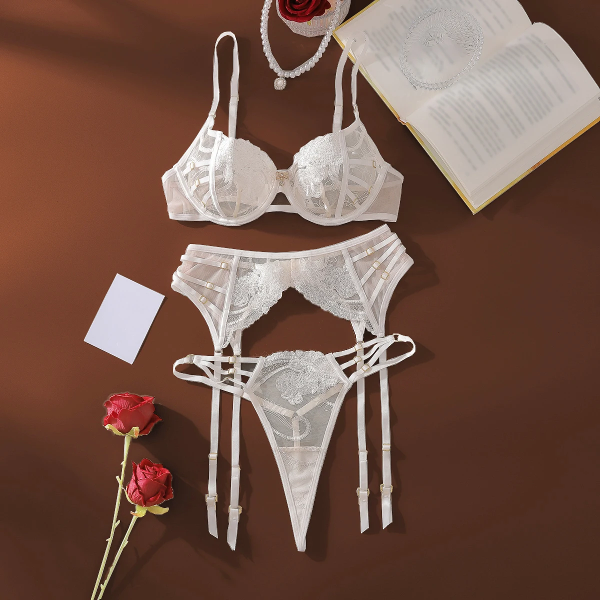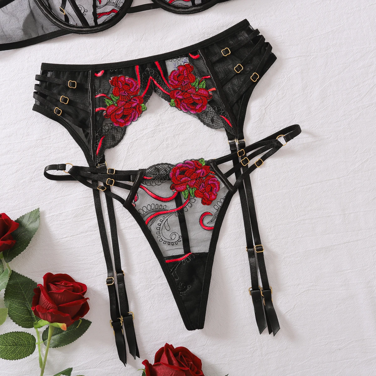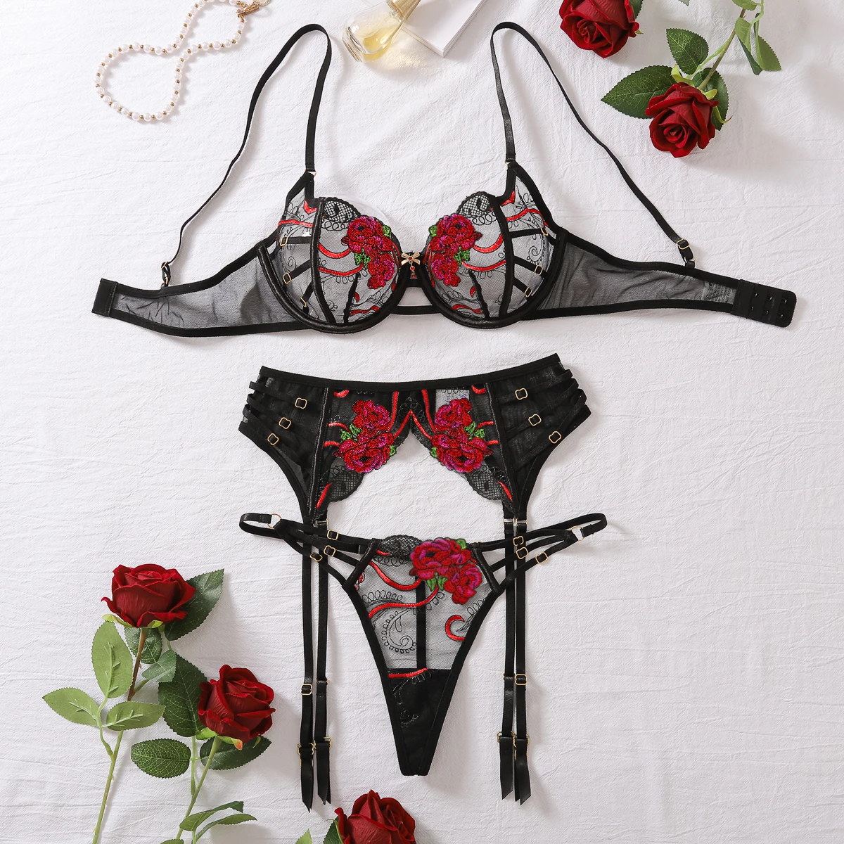 AVELINE 2025 Sexy High End Underwear Set Womens Embroidered Lace Comfortable Flower Pattern Underwear Underwear 3-Piece Set