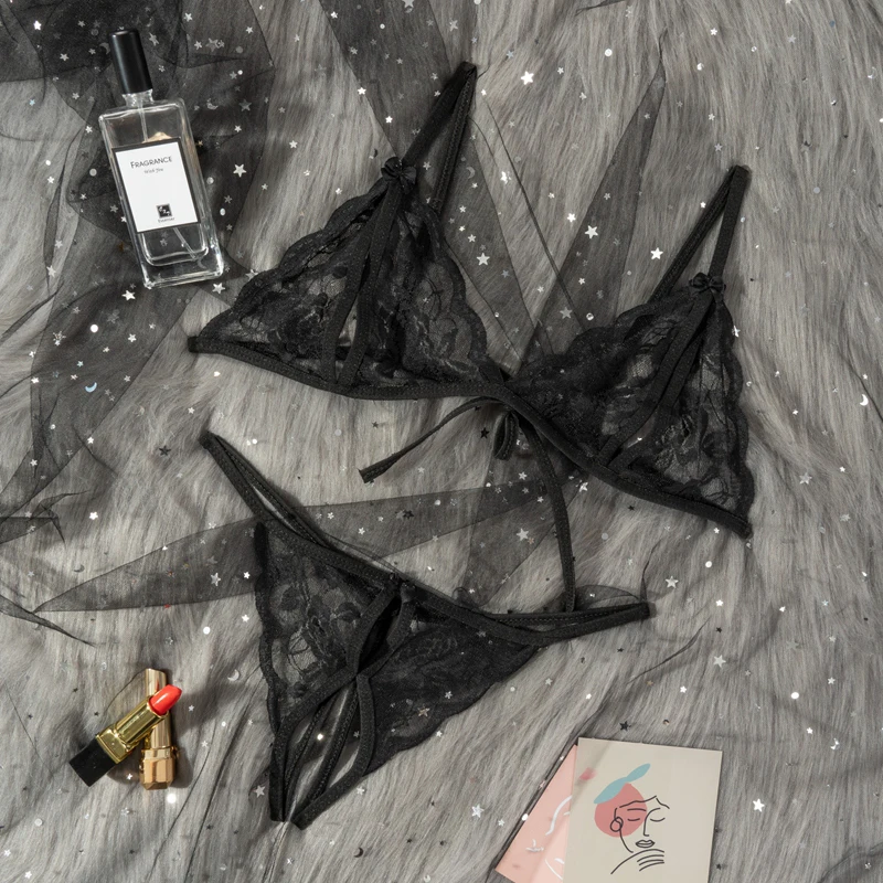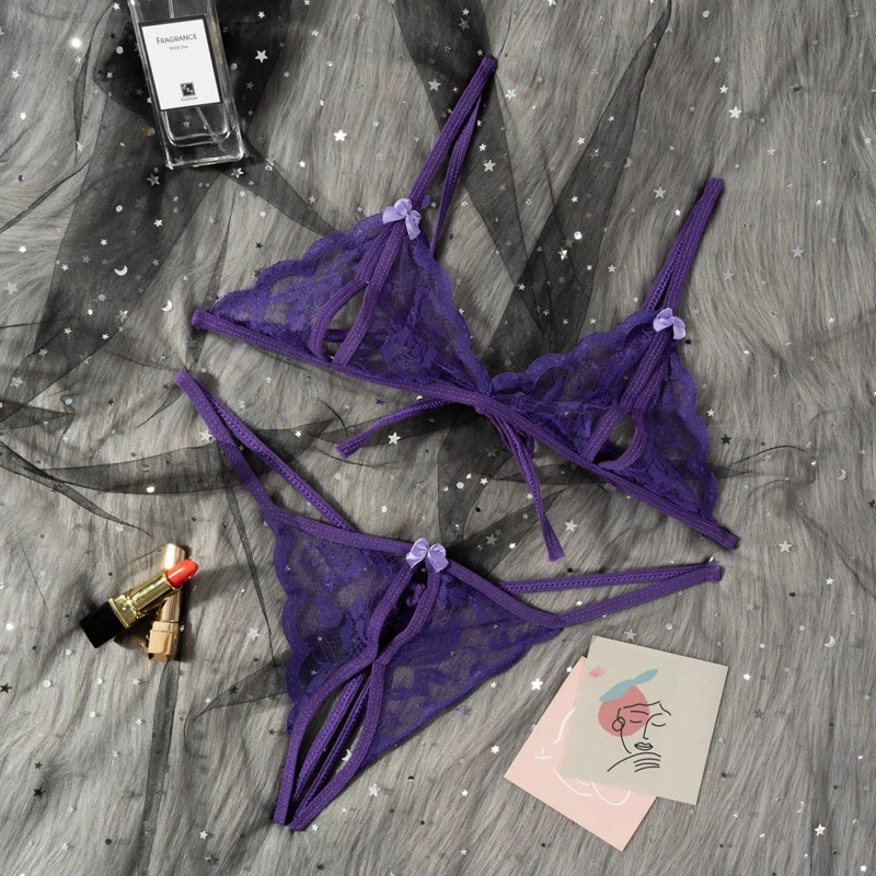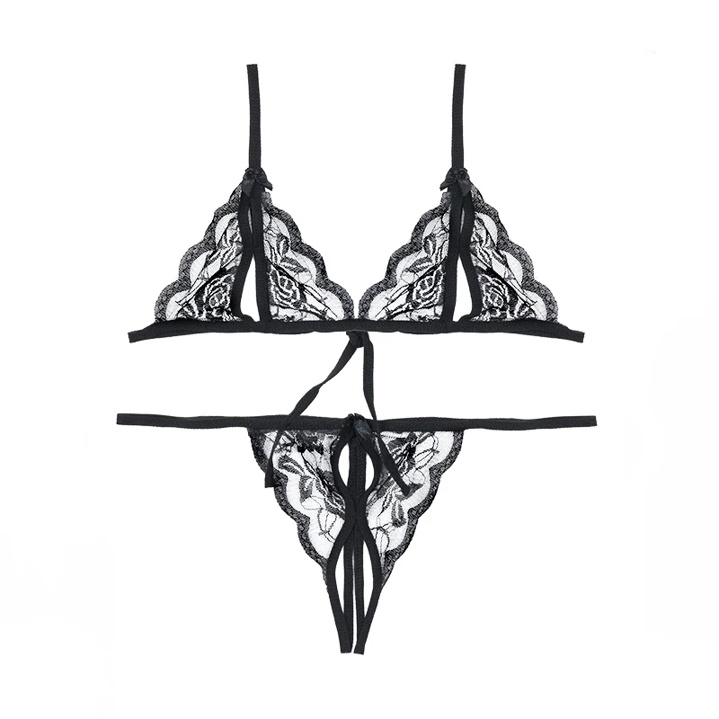 Babydoll Costumes Women Hot Open Bra Crotch Lace Sexy Transparent Underwear Sexy Lingerie Set