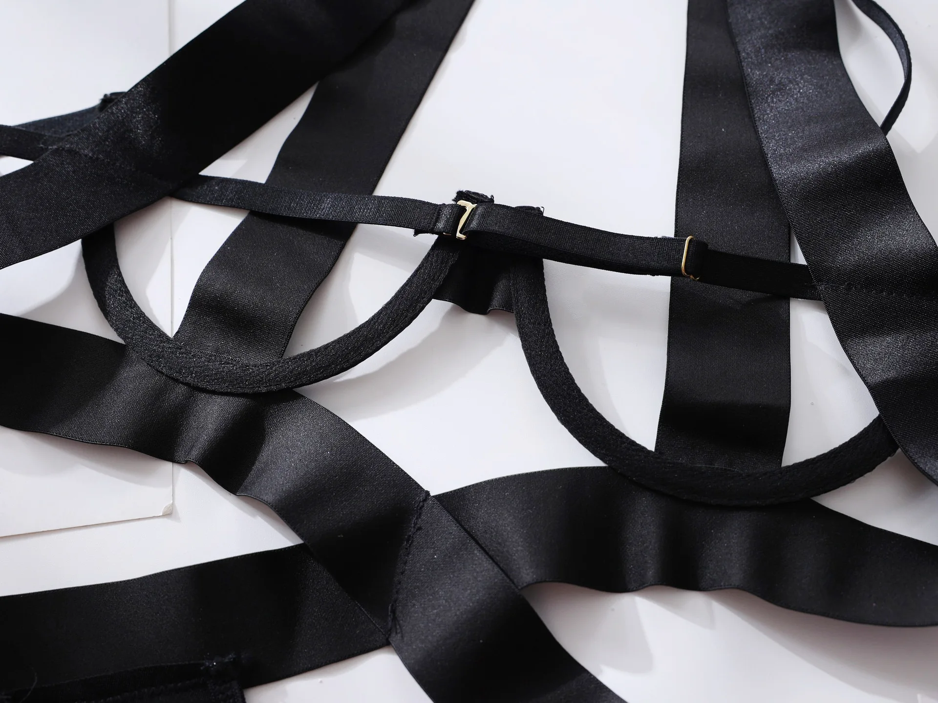 Bondage Lace Bra and Brief with Panties Set Sexy Lingerie for Women Underwear Suspender Hot Erotic Lingerie See Through Outfits
