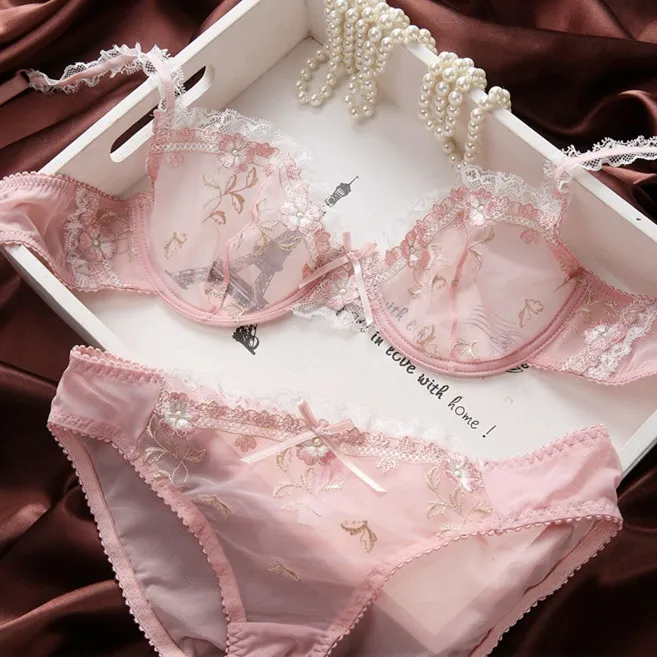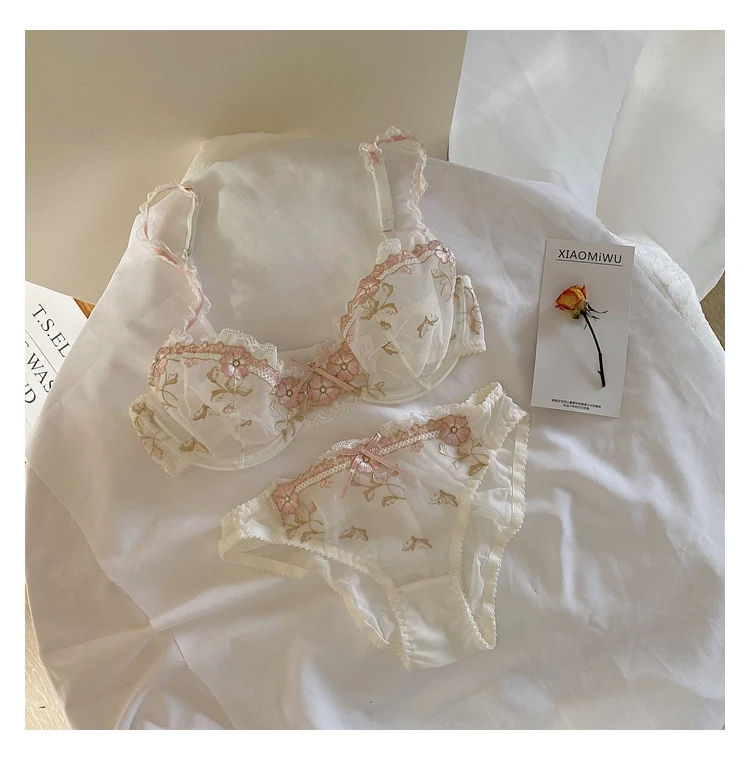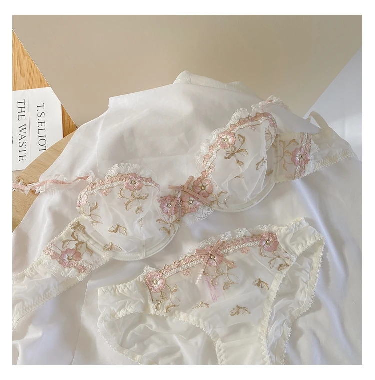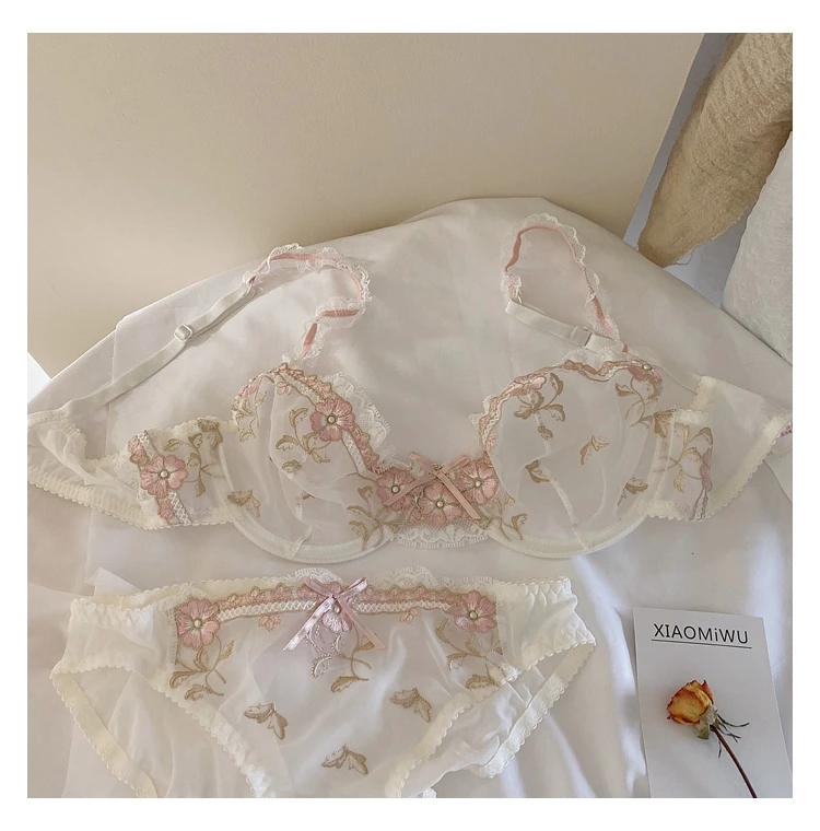 Dear Lingerie Luxury French Pure Desire White Lace Thin Sexy Gauze Underwear Set Embroidery Girl Push-up Bra Big Size Big Breasts Small