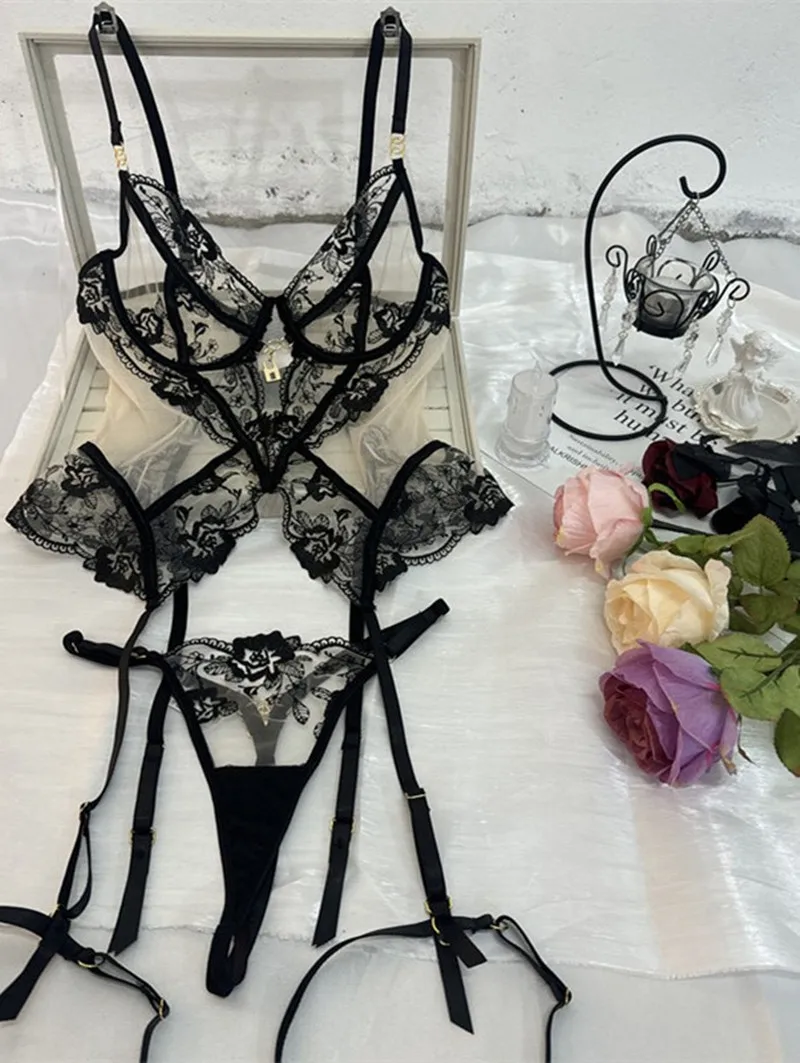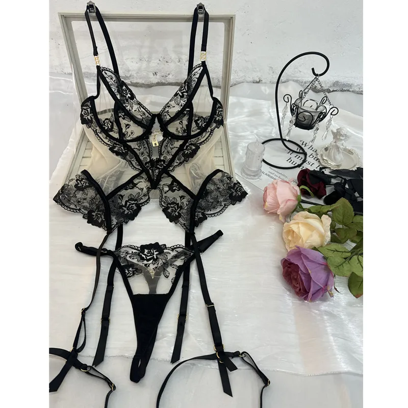 Dear Lingerie Ultra Hot Lace Fantasy Lingerie Set Sexy Onlyfans Kit Transparent Tulle G-String Underwear for Women Fancy Ensemble