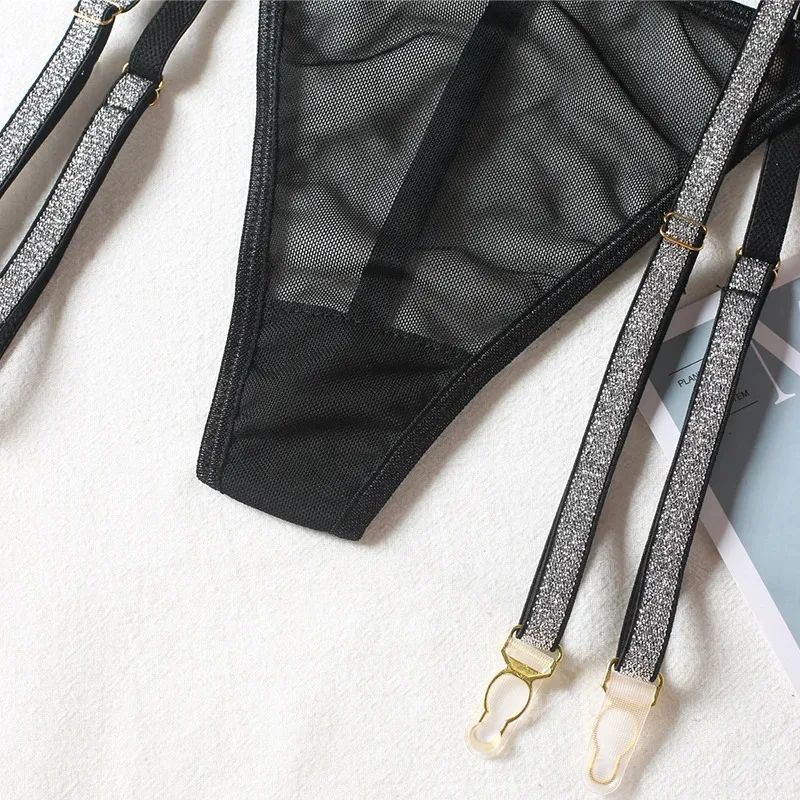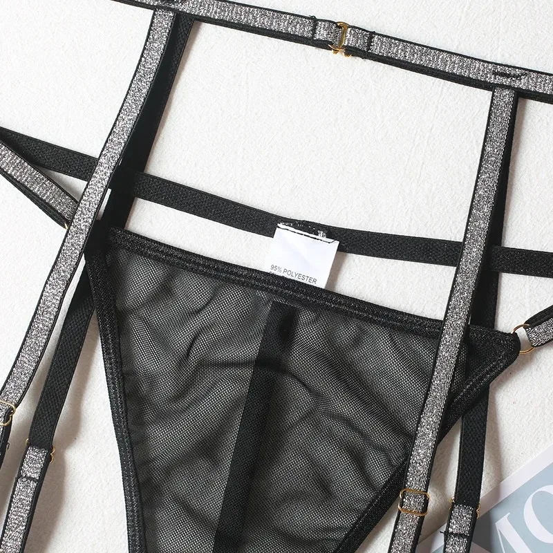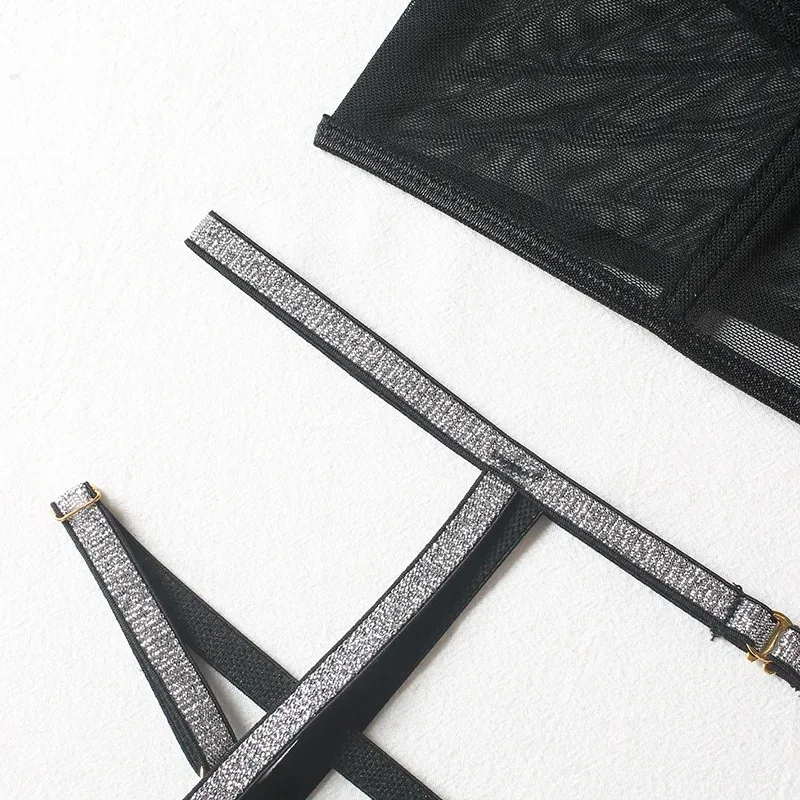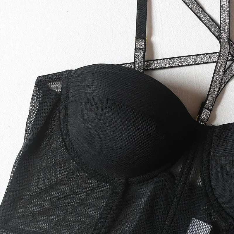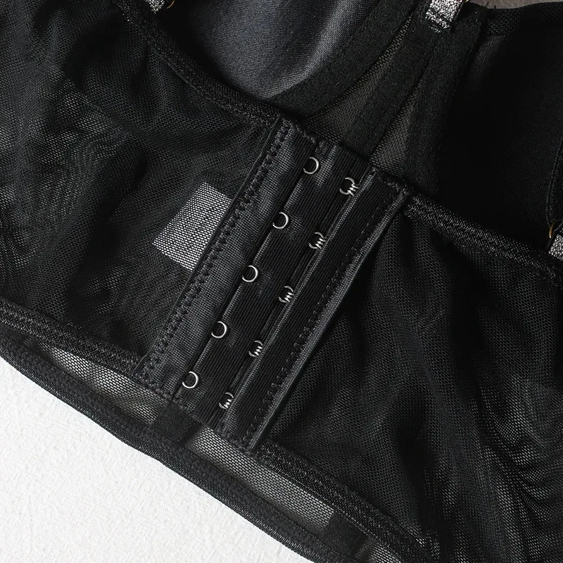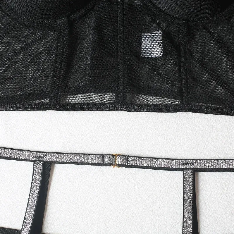 DearLingerie 3 Piece Halter Bra Set Women Long Underwire Push Up Lingerie + Mesh Sexy Thong Set Lingerie Set