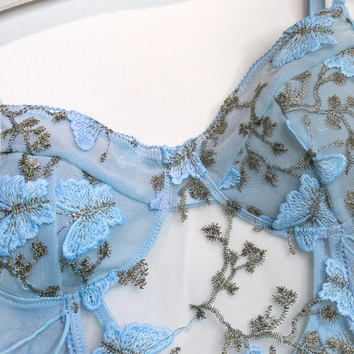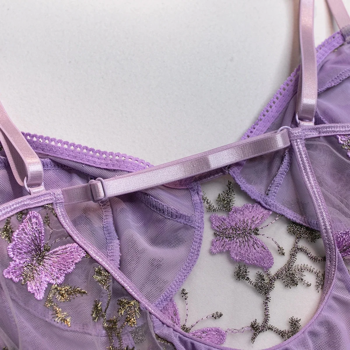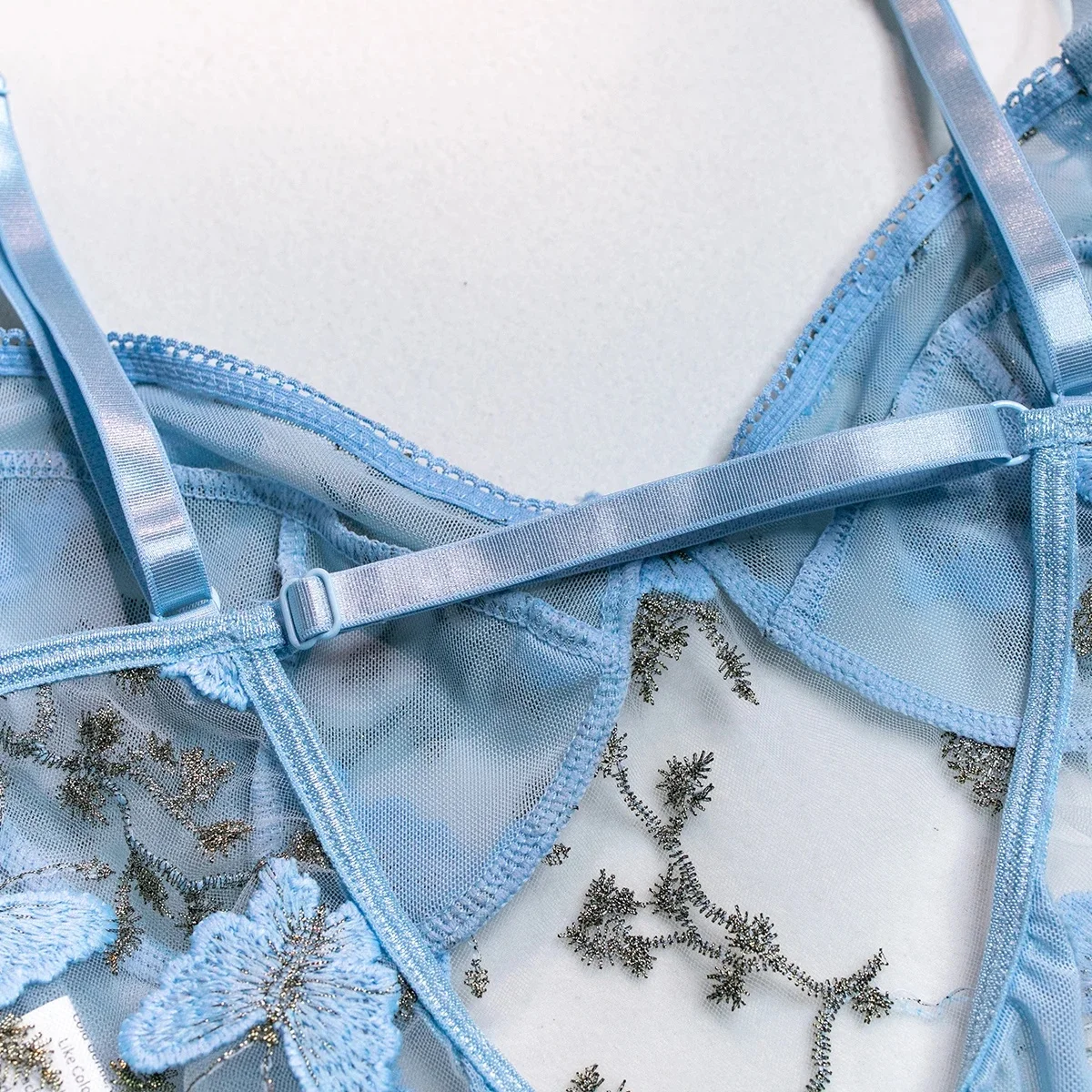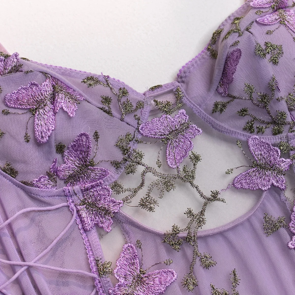DearLingerie Boho Butterfly Embroidery Mesh Bodysuit Women Transparent Lace Up Sexy Bodysuit Body Femme