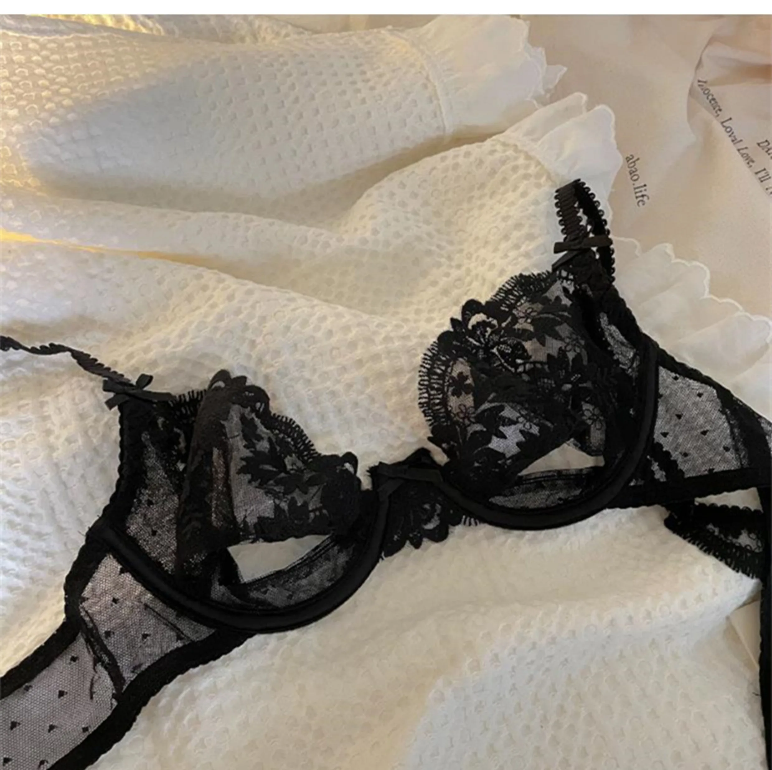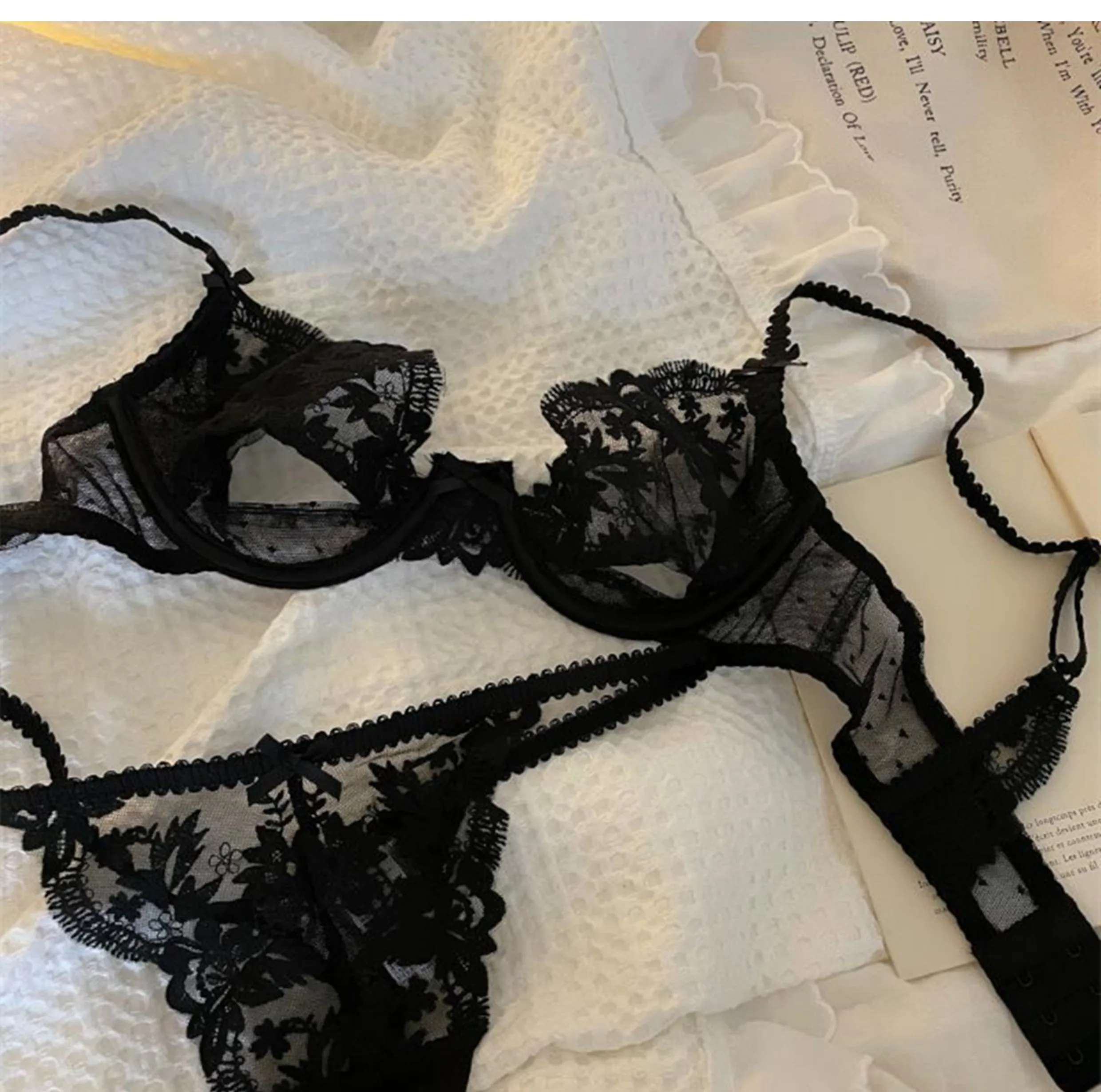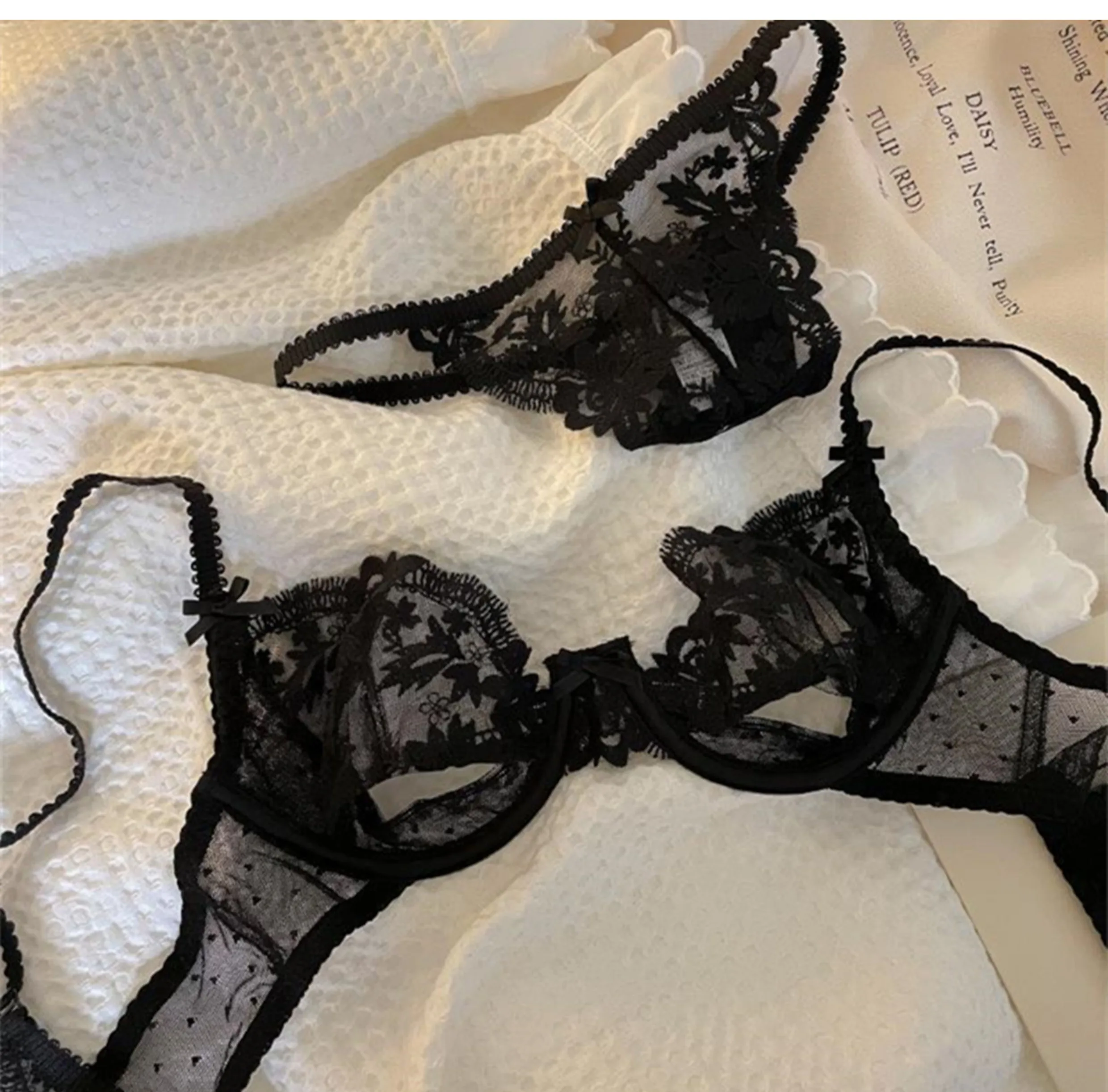 DearLingerie Parisian Sheer Bralette Set – Ultra-Thin Wire-Free Bra No Padding Anti-Sag Lace Cutout Lingerie Sexy Vacation-Ready Tushy