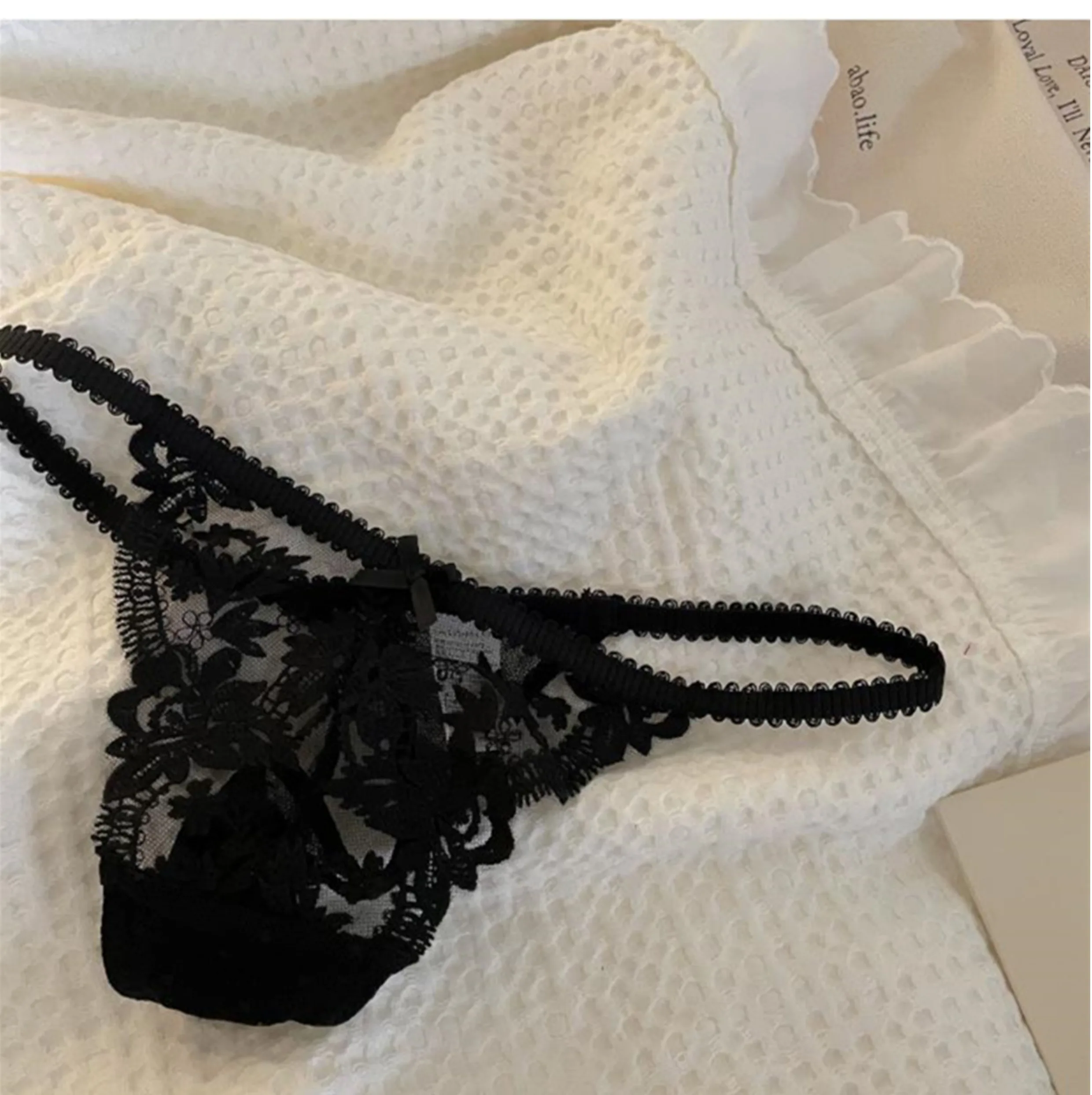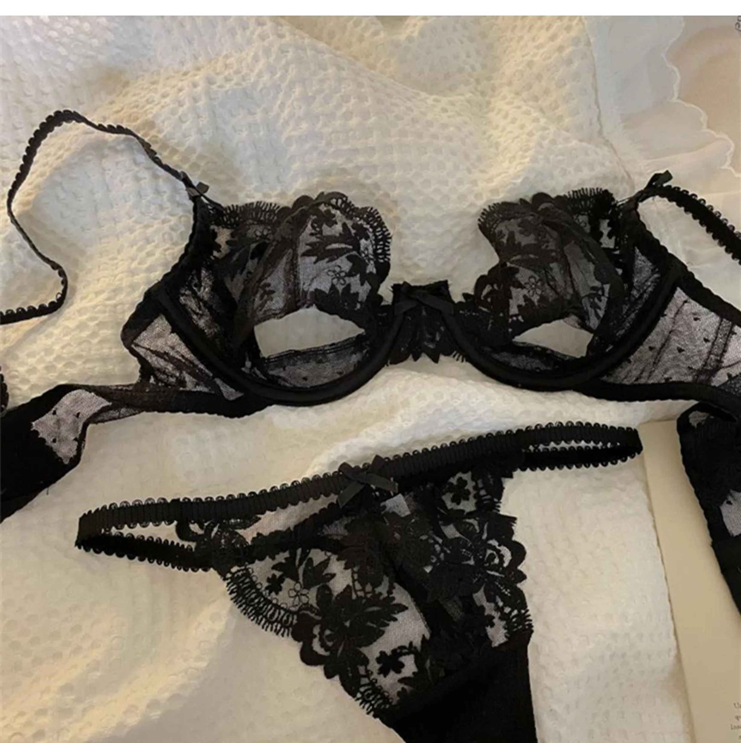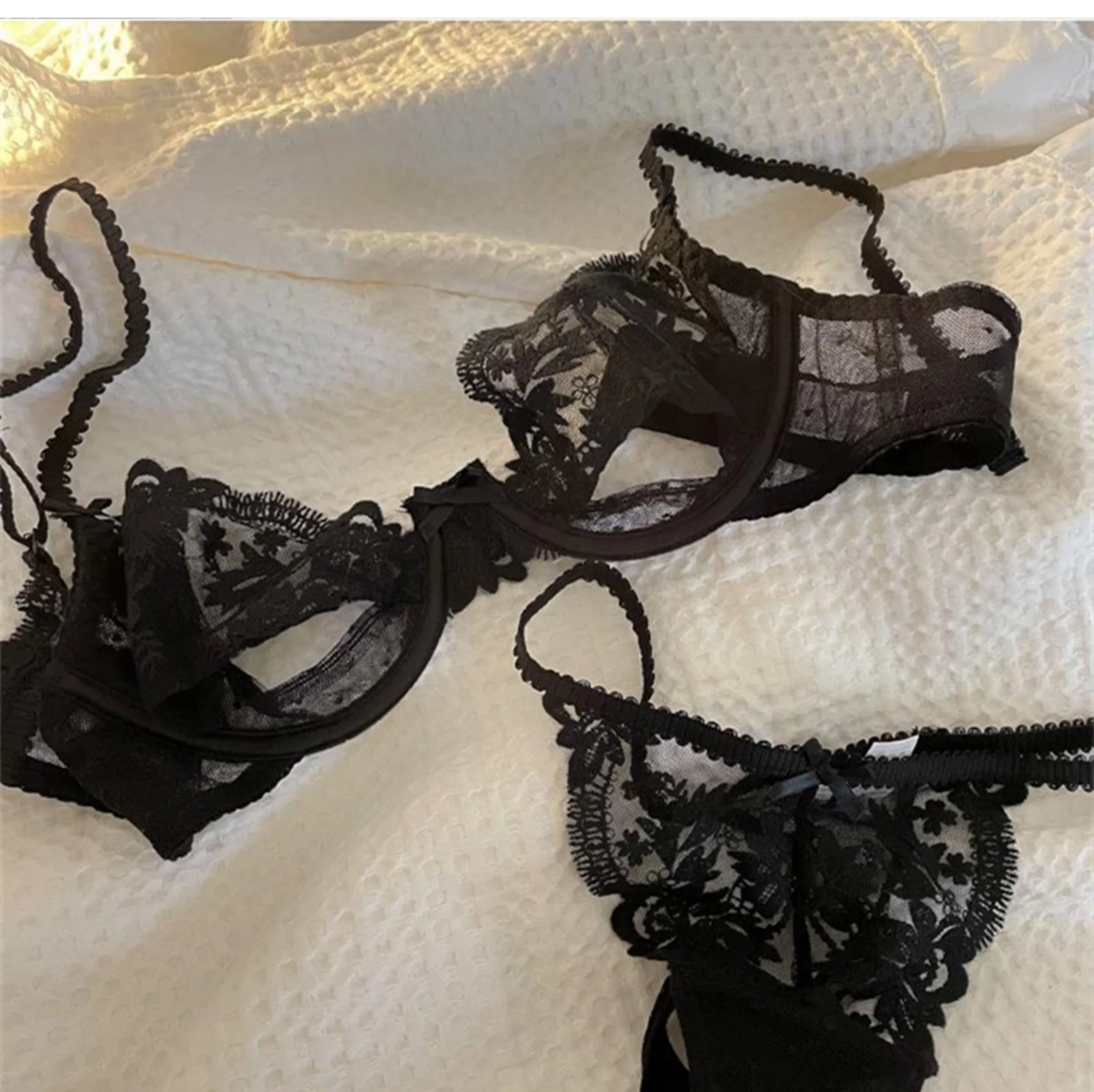 DearLingerie Parisian Sheer Bralette Set – Ultra-Thin Wire-Free Bra No Padding Anti-Sag Lace Cutout Lingerie Sexy Vacation-Ready Tushy