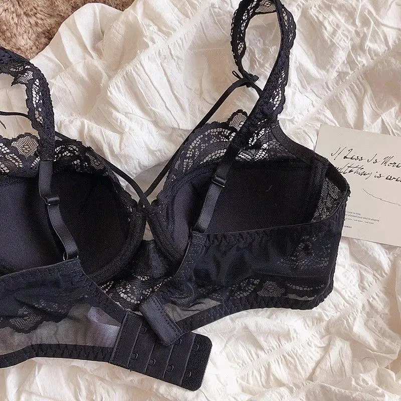DearLingerie Sexy Lace Bralette Set Small Busts French Design Removable Straps with Thin Push Up Pads, Soft Underwire Bra Cover Top