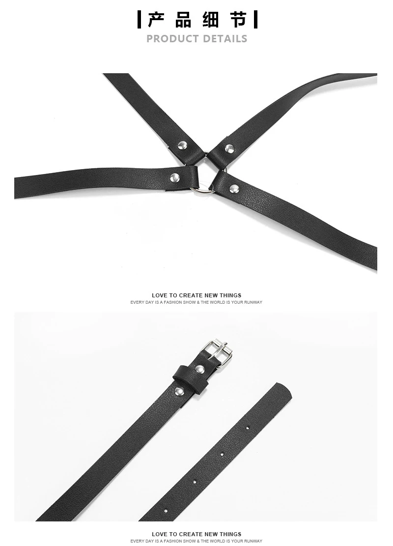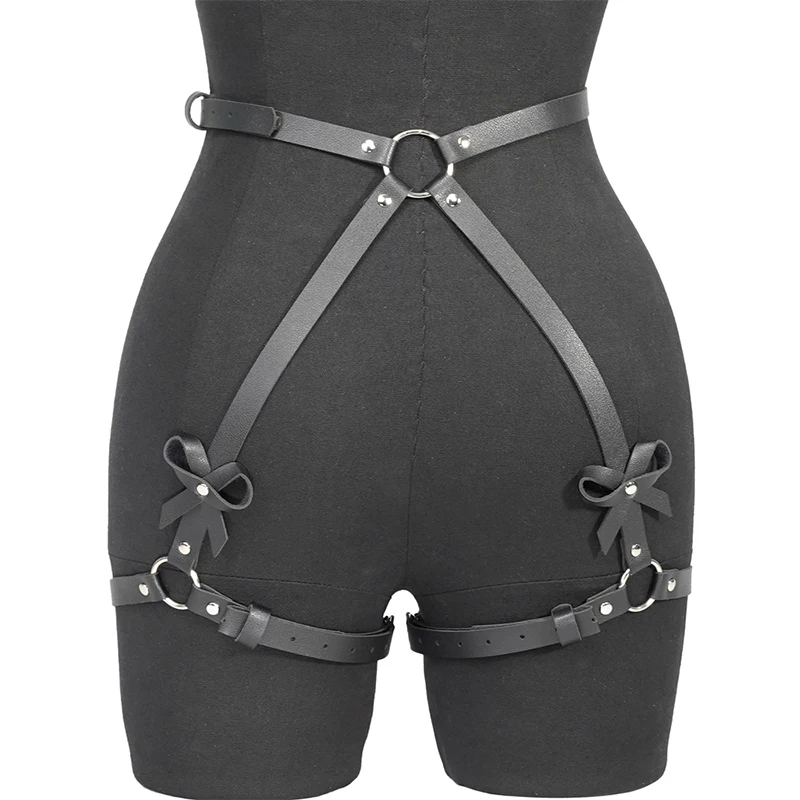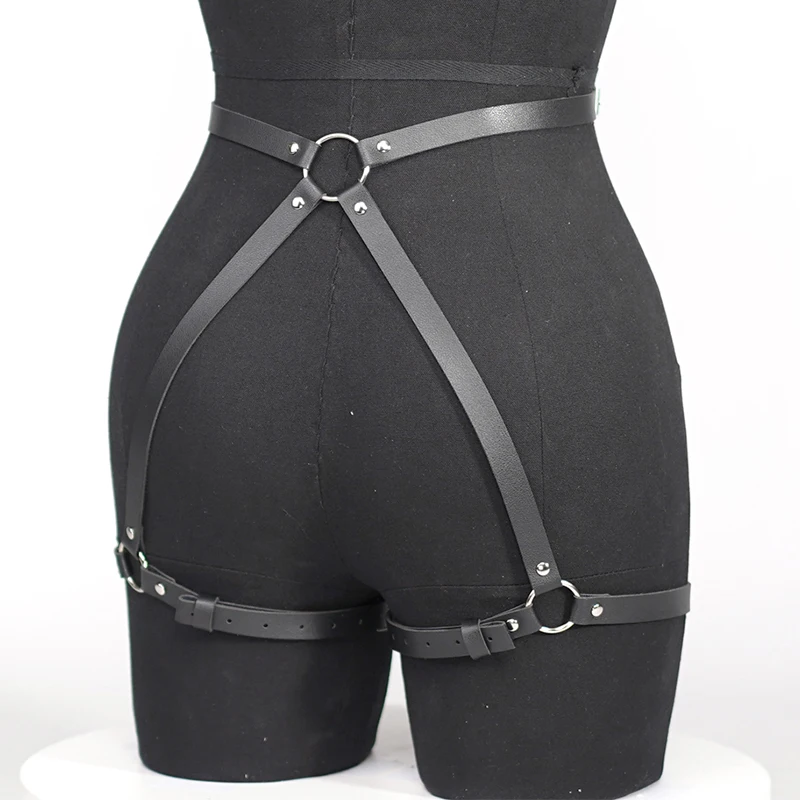 Features:Harness Bondage Garter Belt Suspender. Buckle closure for size adjustment.