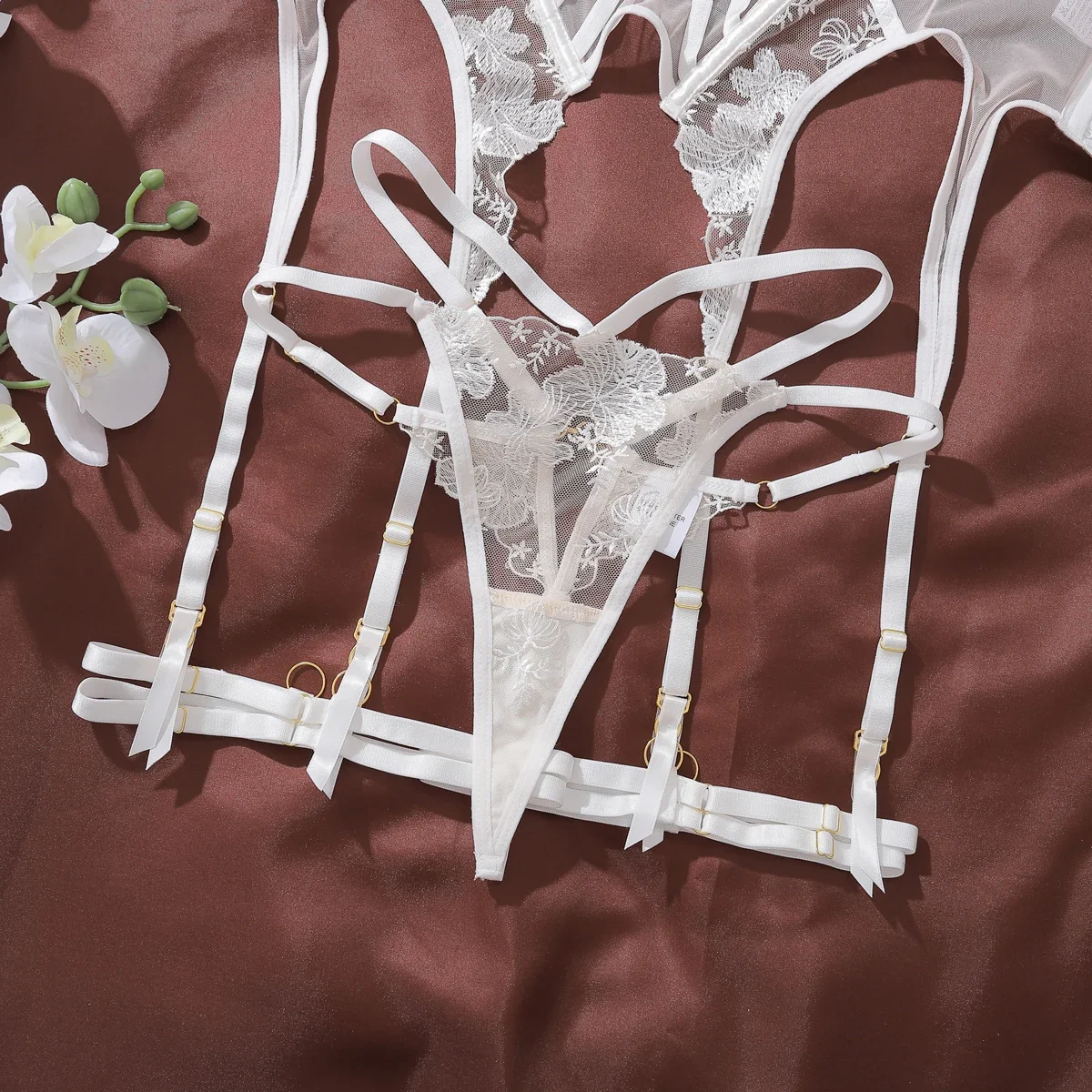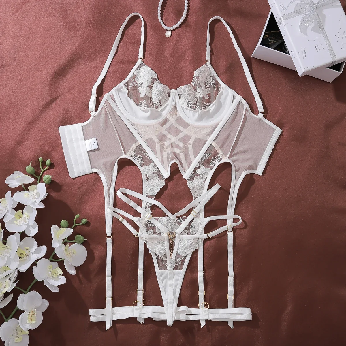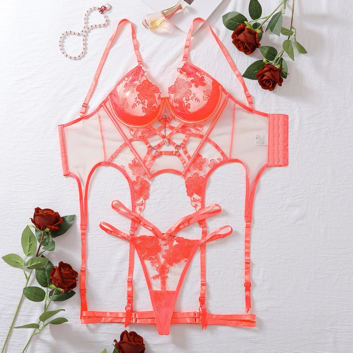 Fashionable Womens Sexy Embroidery Mesh Perspective Splicing Craft Sexy Underwear Strap Two Piece Set Sexy Underwear SeT