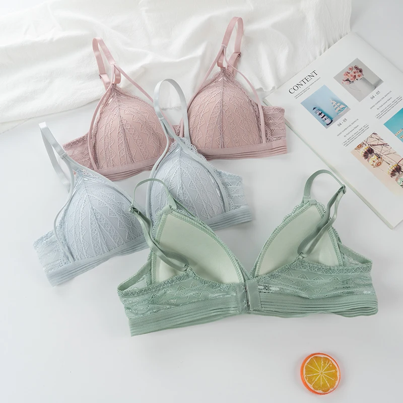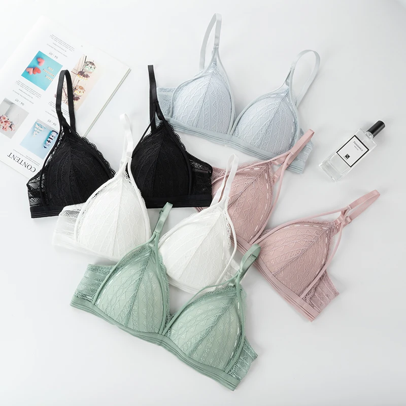Floral Lace Bras for Women Sexy Lingerie Beauty Back Deep V Bralette Wire Free Thin Underwear Push Up Bra Female Brassiere