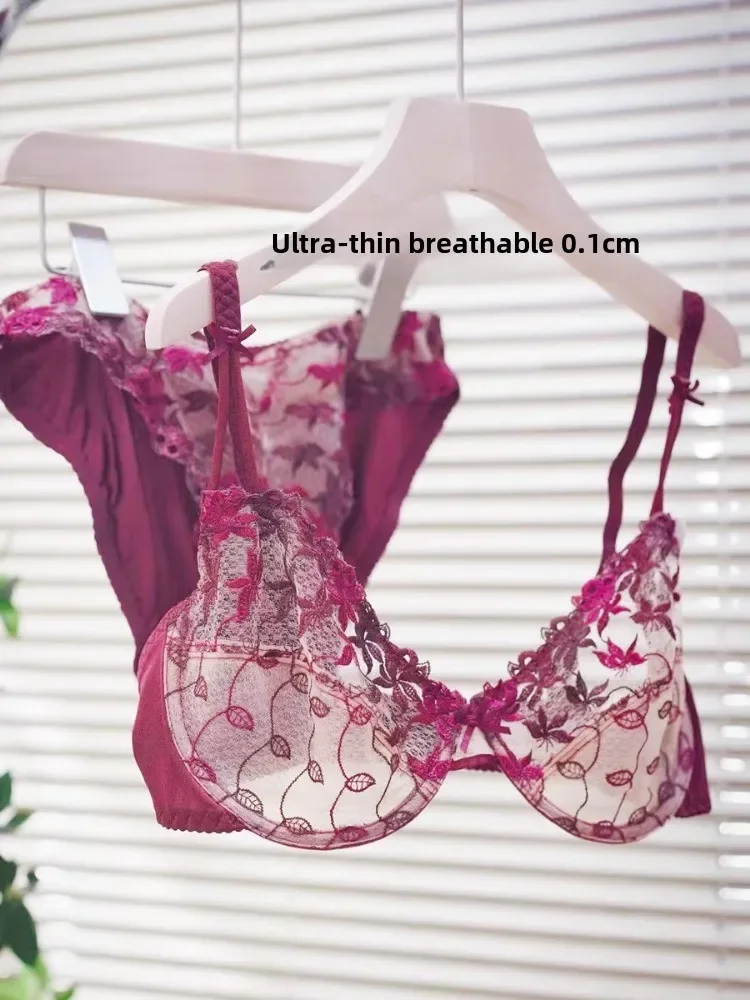 MOYISU Europe and The United States Sexy Underwire Underwear Plus Size Bra Set Big Breasts Red Women Underwear Bra Lace Bow