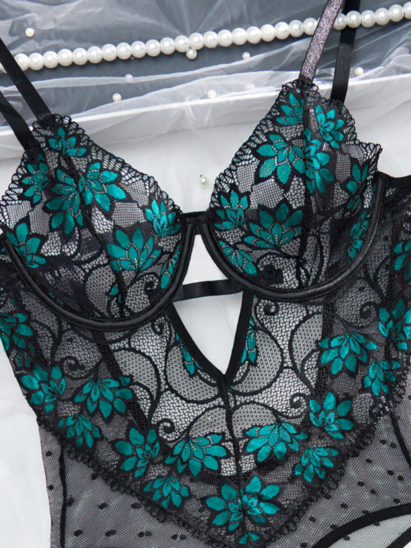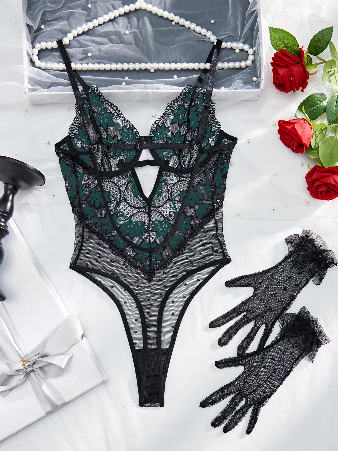 MUZISKAT 2024 Hot Selling Fashion Womens Sexy Lace Mesh Gloves Transparent Underwear Tight Maid Jumpsuit