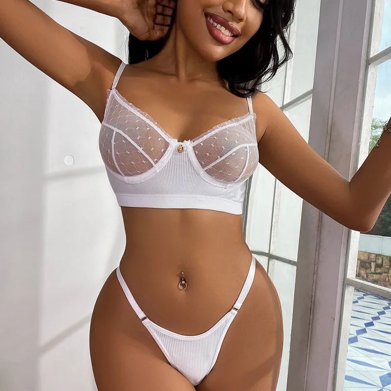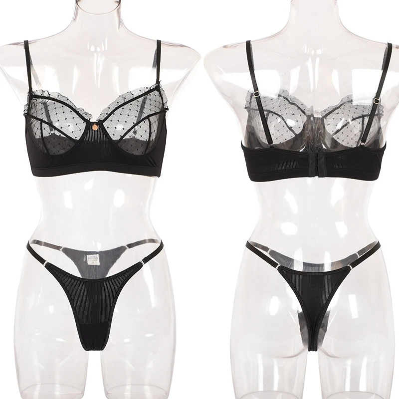 Sexual Ultrathin Transparent Polka Dot Bra Set Sexy Bra No Steel Support Underwear For Women G-string Lingerie Erotic Costumes