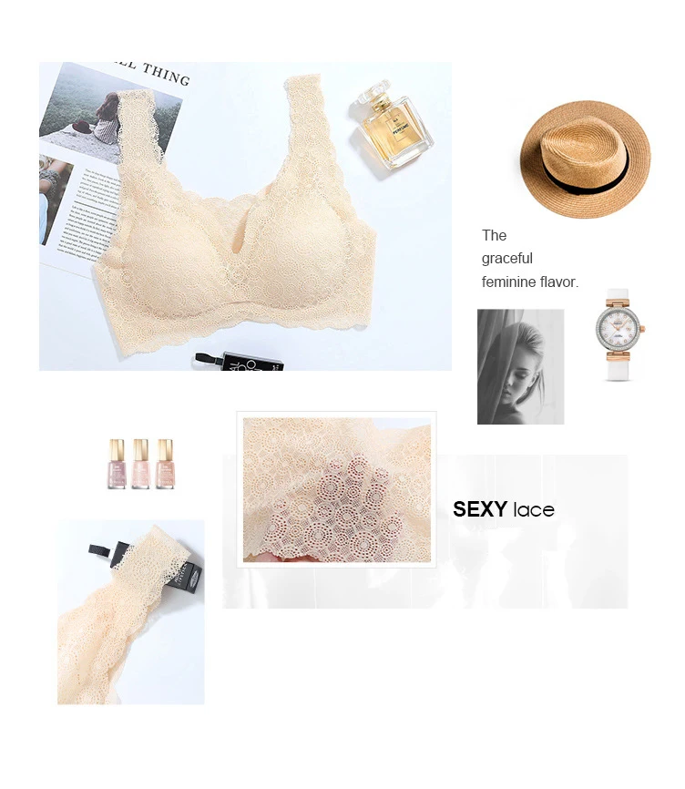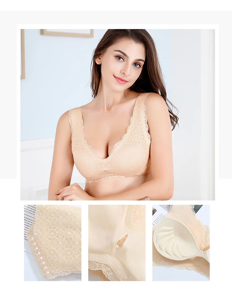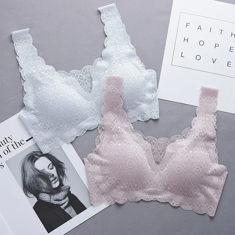 Sexy Bra with Pads Women Seamless Sleep Bra Plus Size Sports Underwear Girls Lace Lingerie Breathable Ladies Brassiere