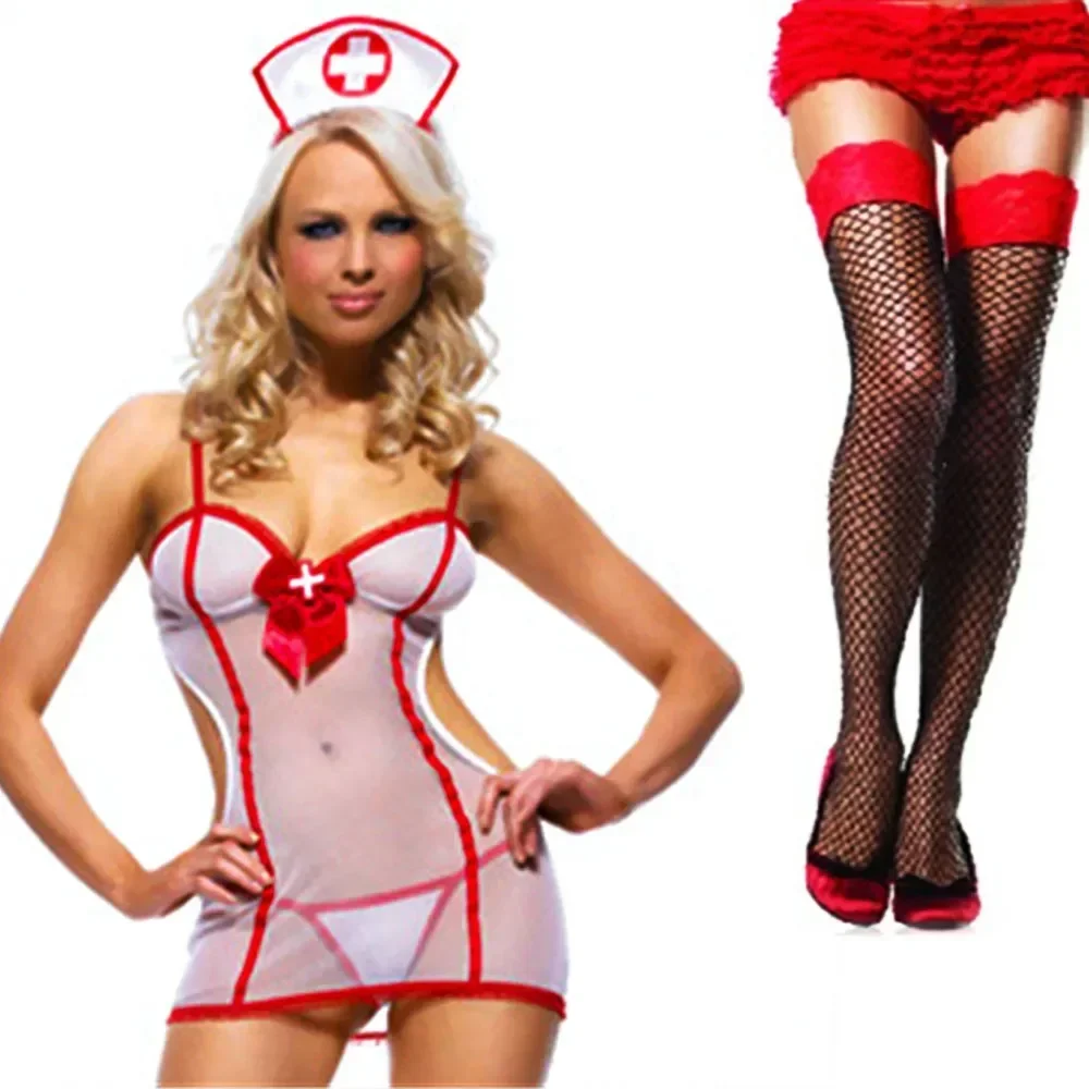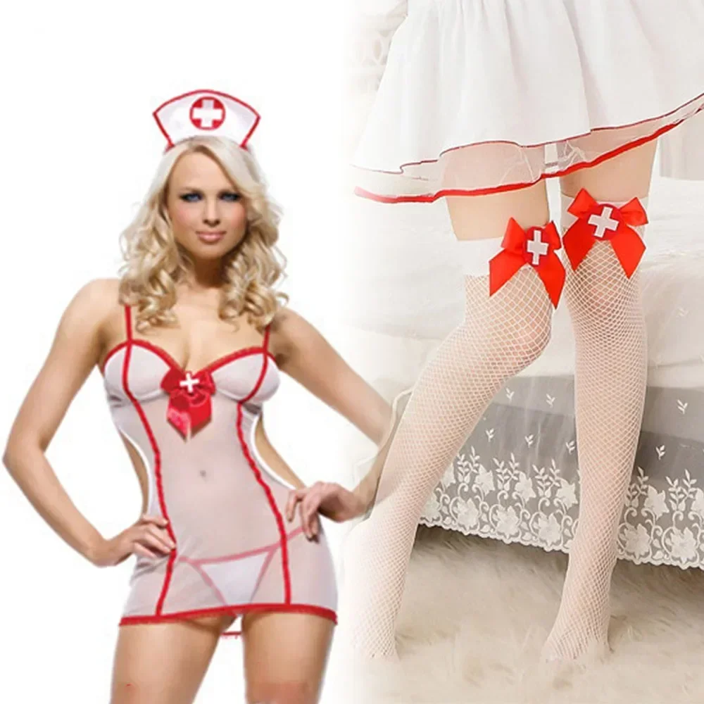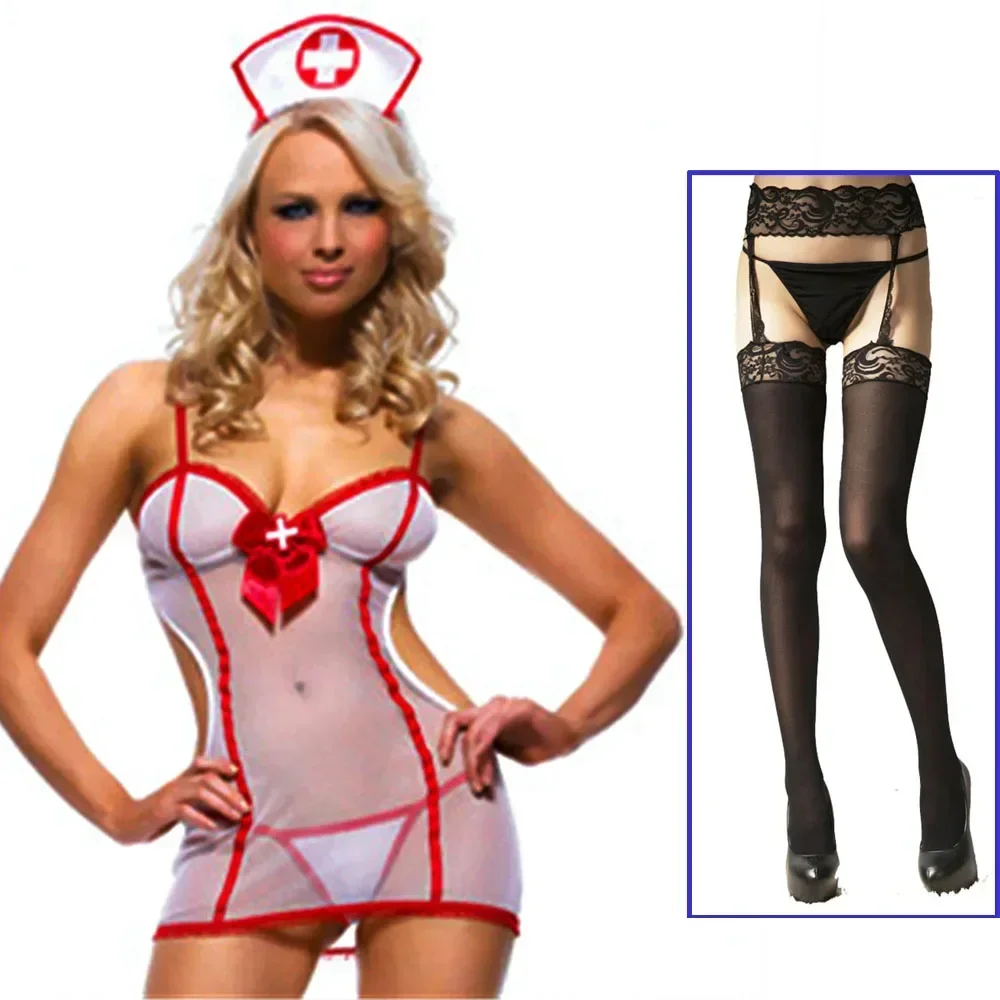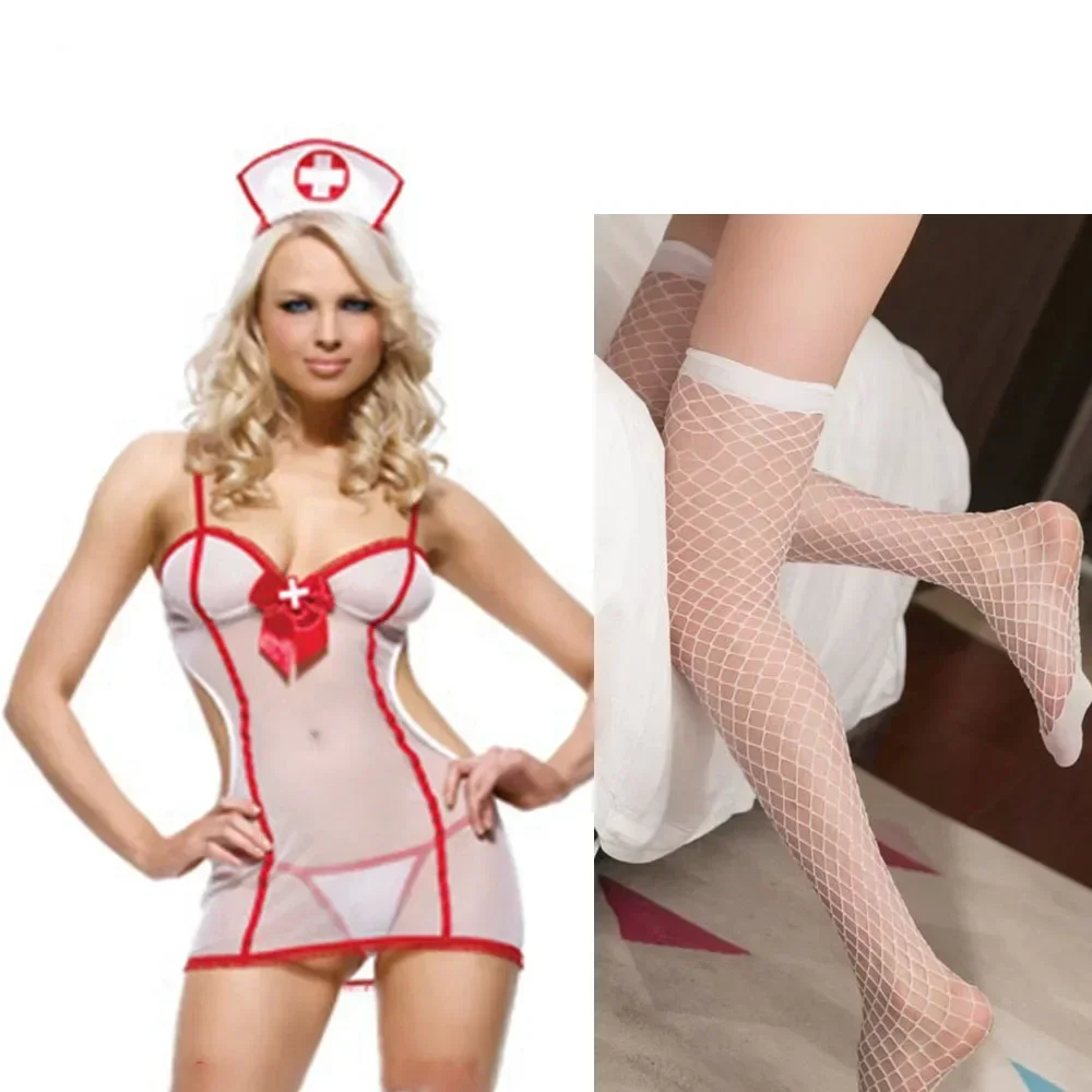 Sexy Cosplay Nurse Dress Suit set Lingerie Maid Apparel high Knee Stockings Women Underwear Intimates Exotic toys for Love games
