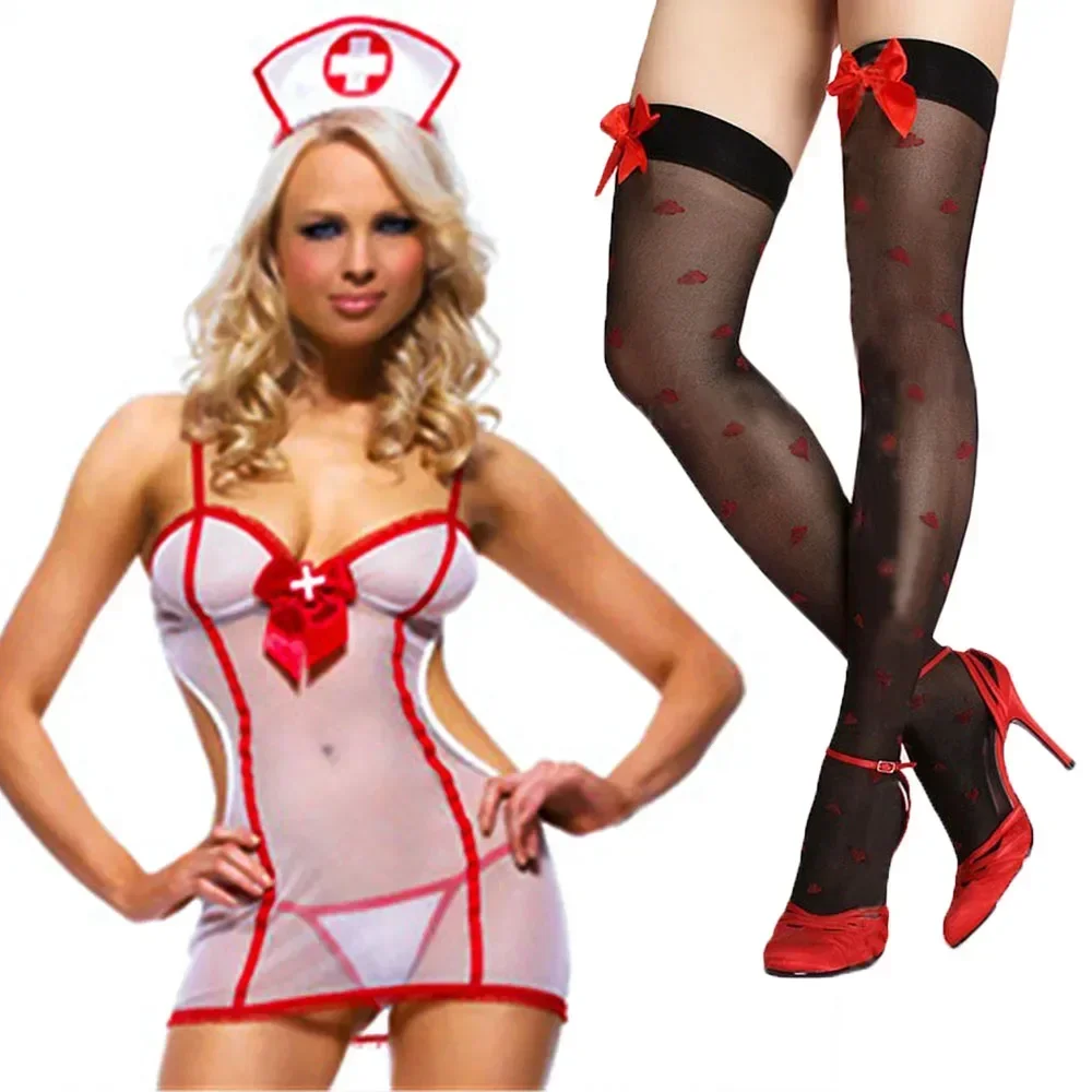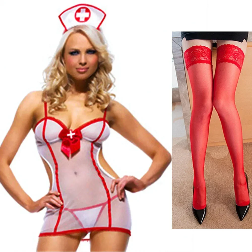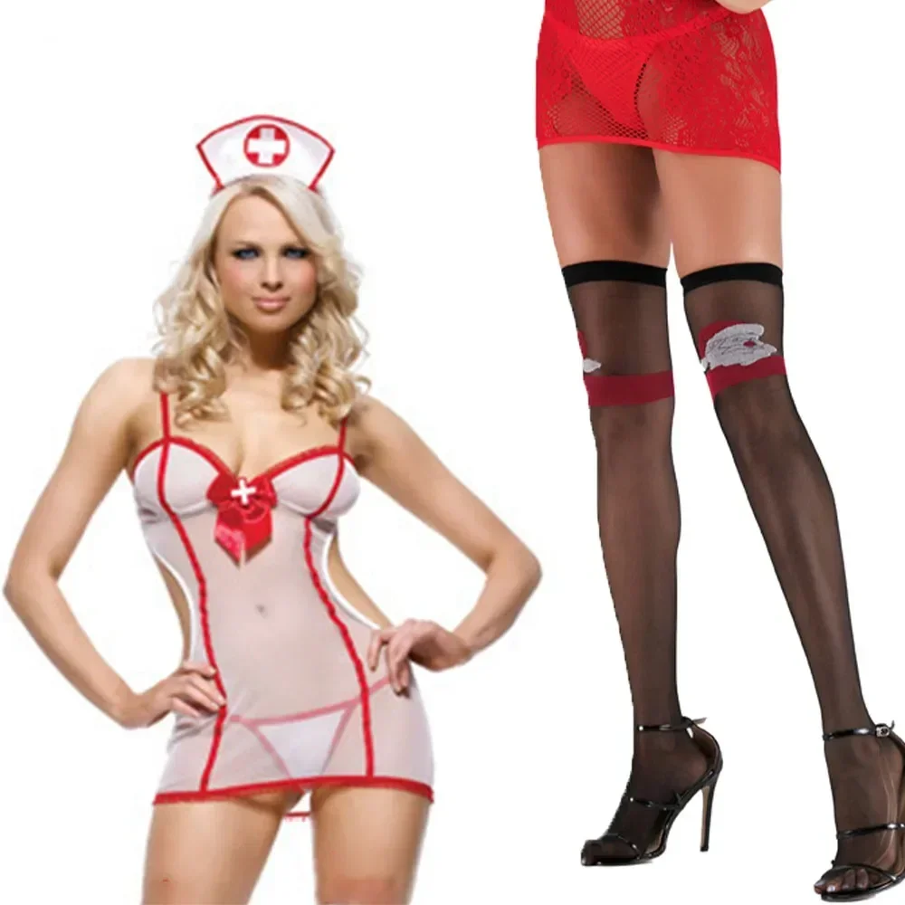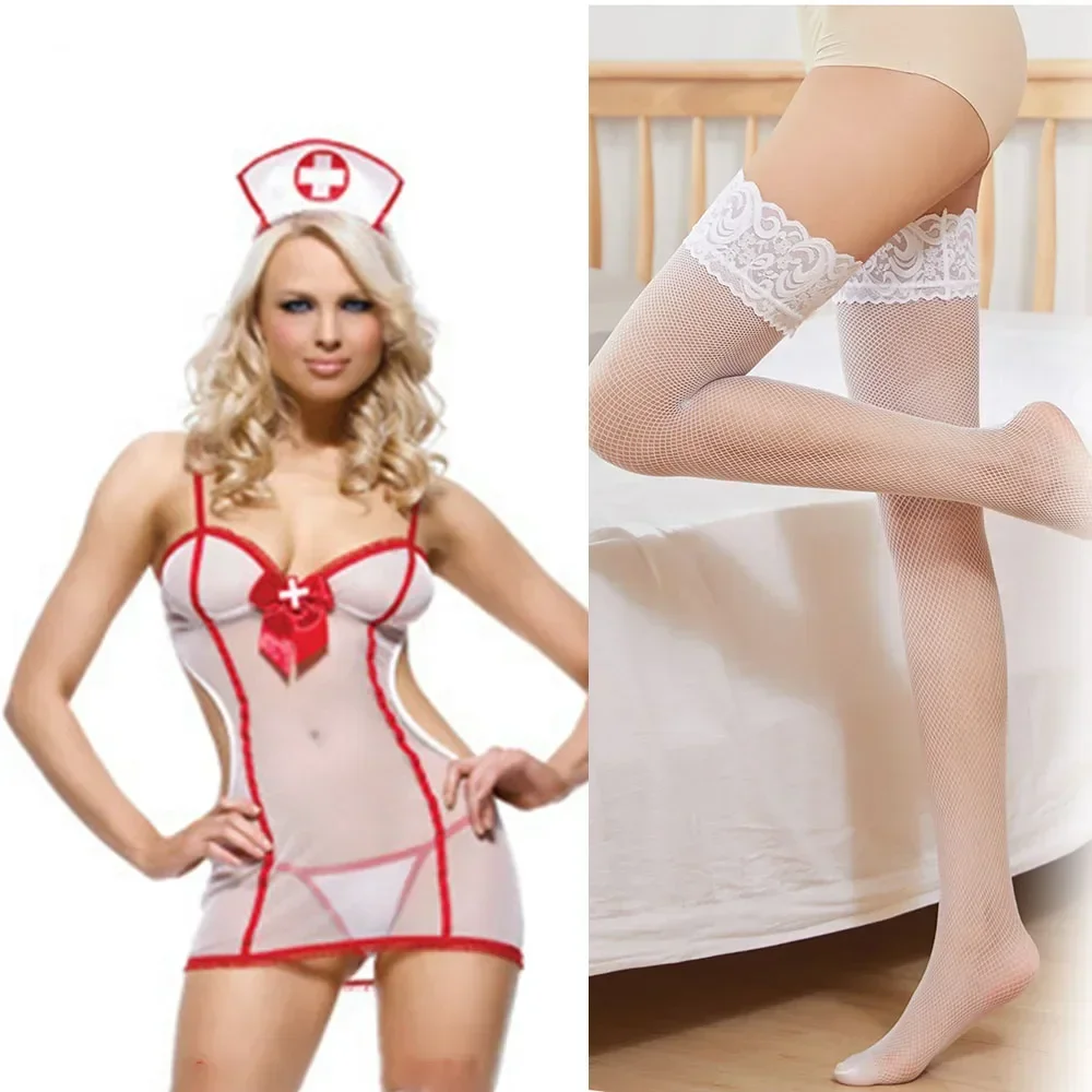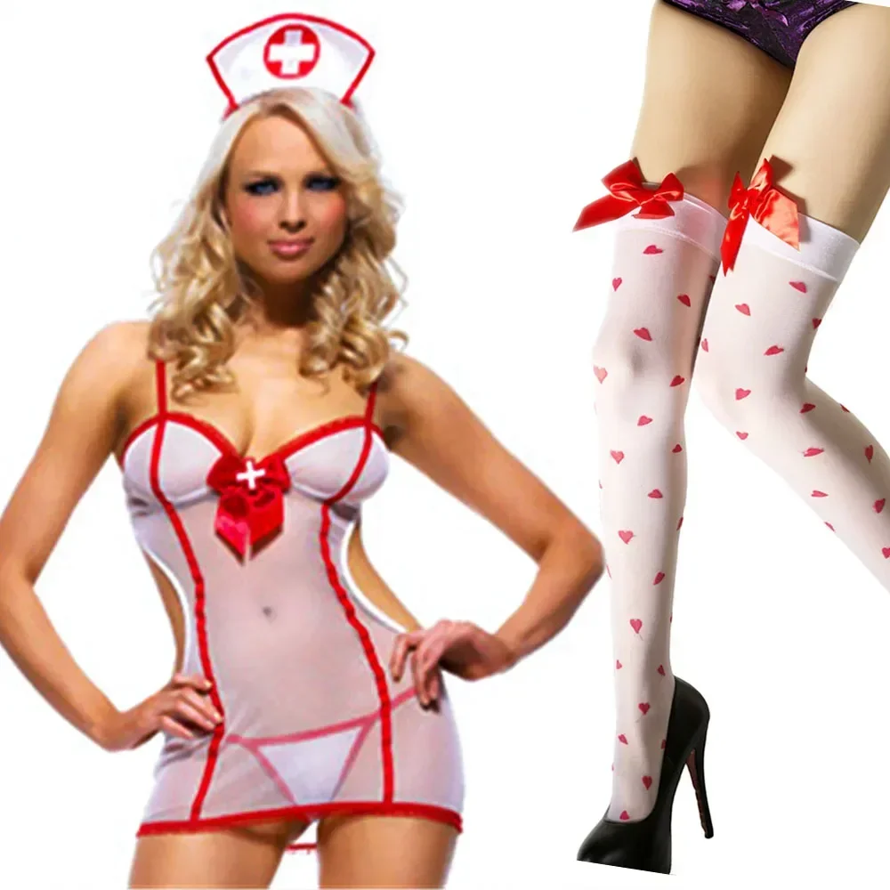 Sexy Cosplay Nurse Dress Suit set Lingerie Maid Apparel high Knee Stockings Women Underwear Intimates Exotic toys for Love games