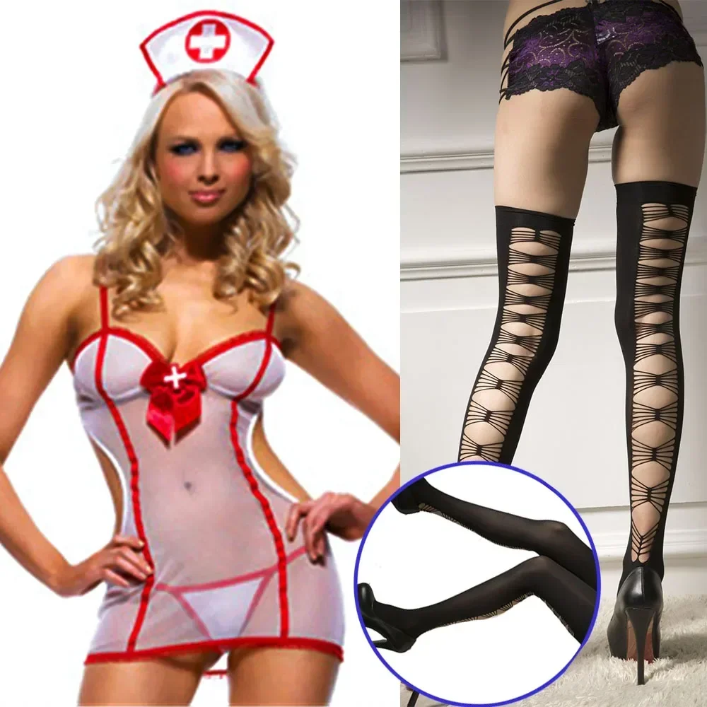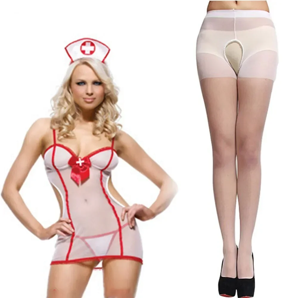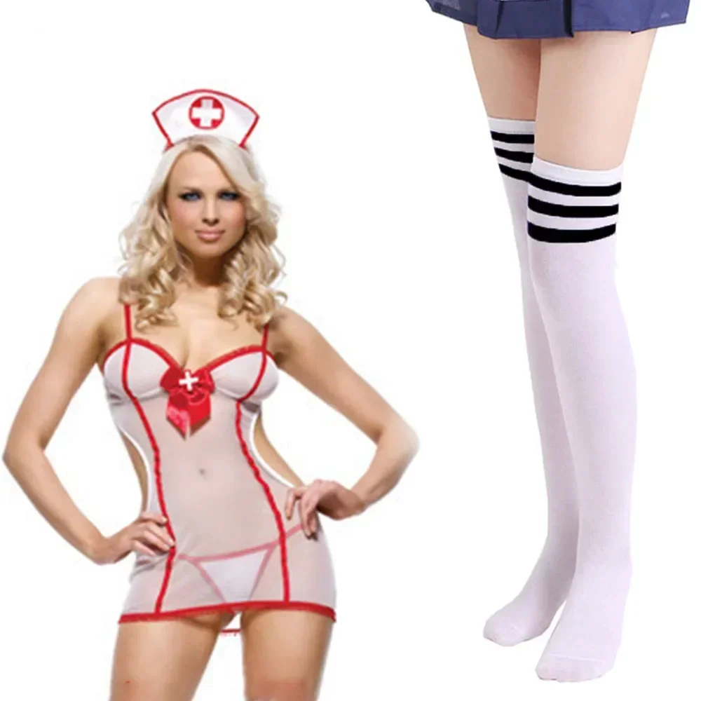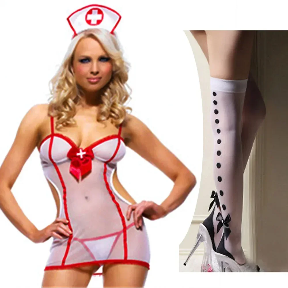 Sexy Cosplay Nurse Dress Suit set Lingerie Maid Apparel high Knee Stockings Women Underwear Intimates Exotic toys for Love games