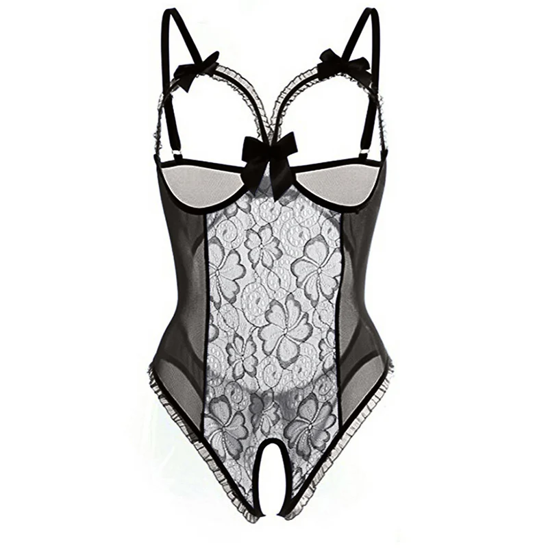 Sexy Full Open Bra Porn Crotchless One Piece Lingerie Set For Female Sex Clothing Erotic Breast Open Seduction Lace Bodysuit Set