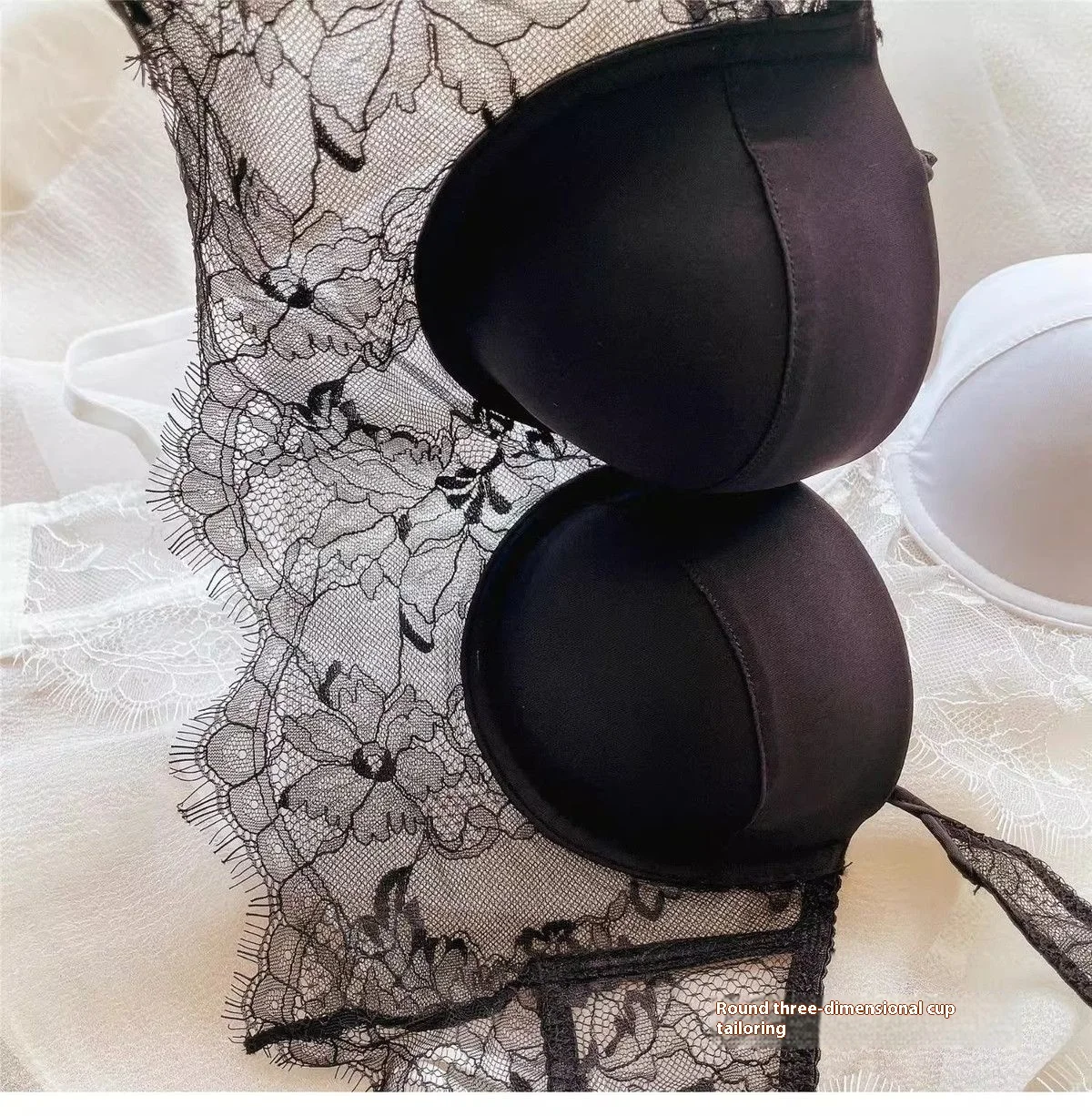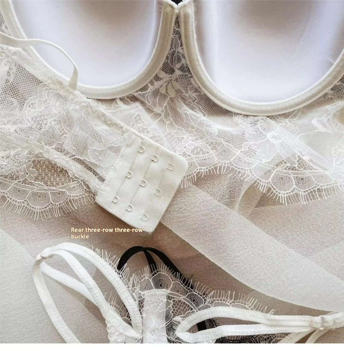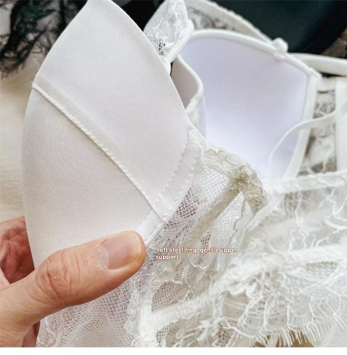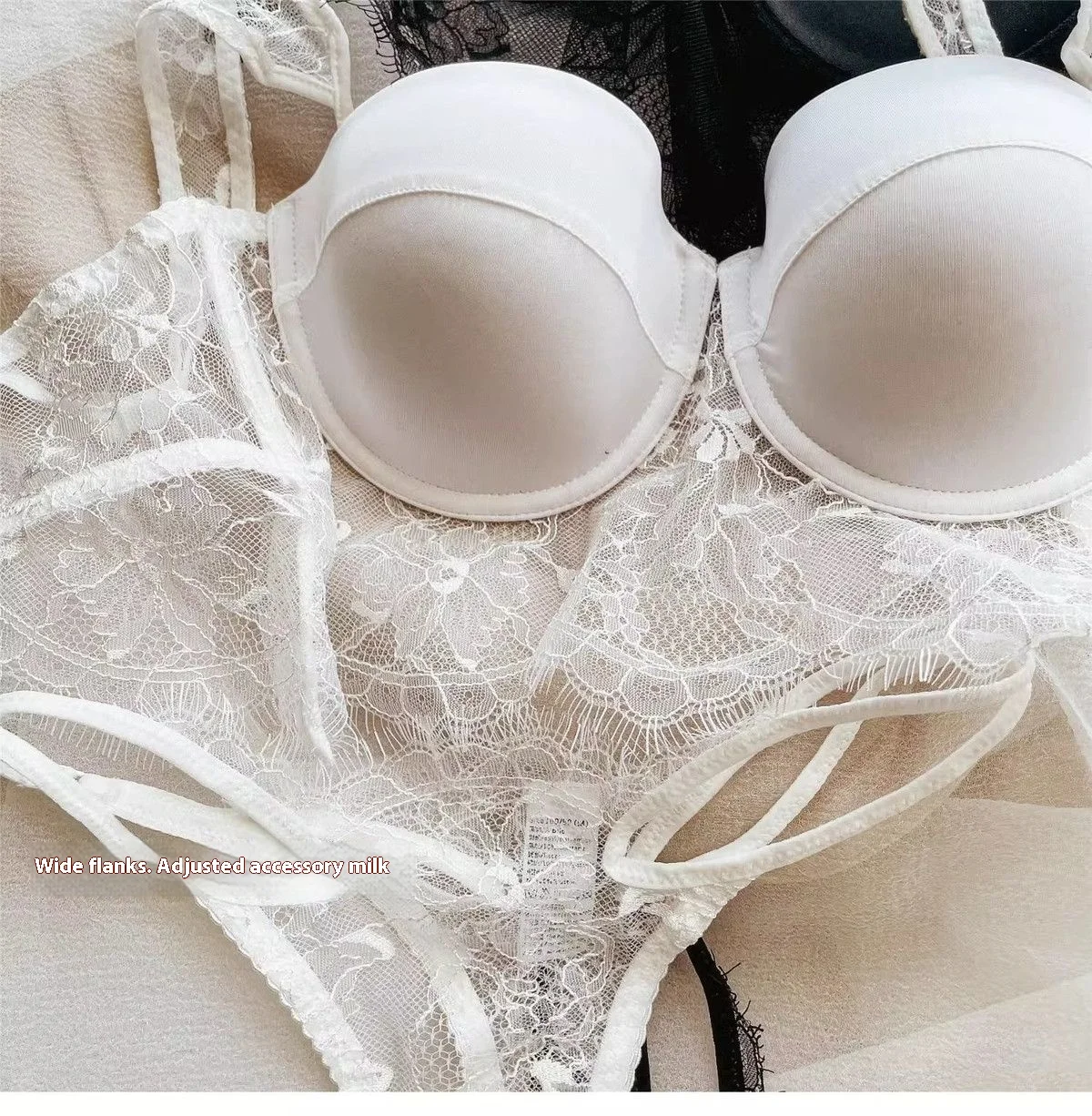 Sexy Lace Underwear Female Poly Poly Thin Soft Steel Ring up Support Anti-Sagging Collect Vice Breasts Solid Color Back Bra Set