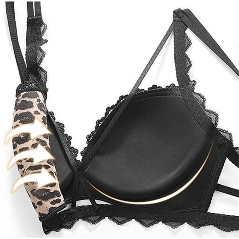 Sexy Leopard Push Up Bra Women Seamless T-shirt Bra With Lace Back Lift & Enhance Wireless Support Breathable Soft Underwear Bra