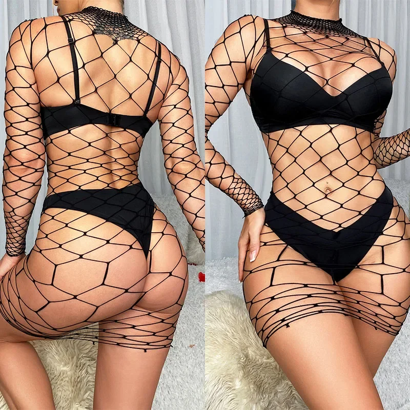 Sexy Lingerie Woman Underwear Exotic Fishnet Dress Set Pornstar Lingerie Porn Outfits BH Mesh Suit Erotic Clothes Sex Set