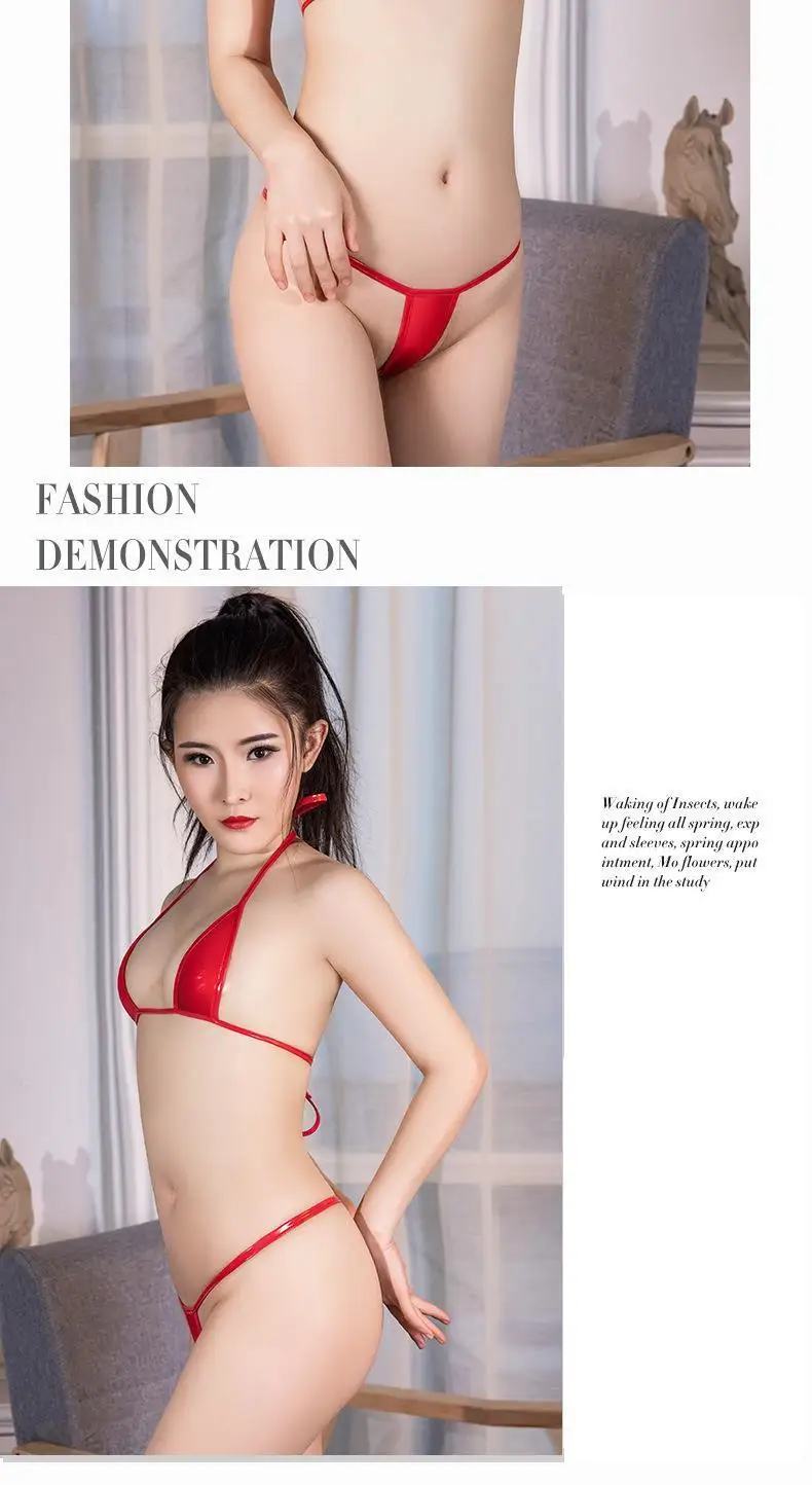 Sexy Shiny Mini Bikini Suit Women Micro Bra and Thong G-string Swimwear Brazilian Swimsuit Underwear Solid Color Beach Bathing Suit