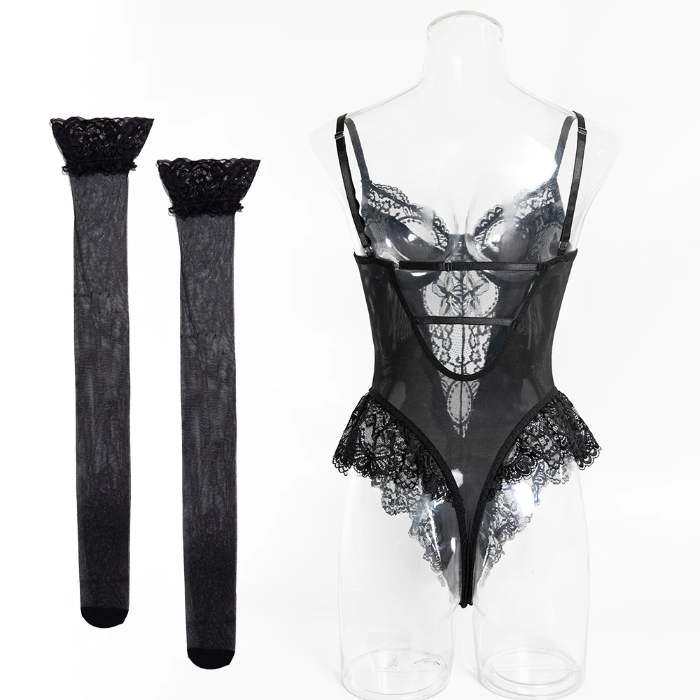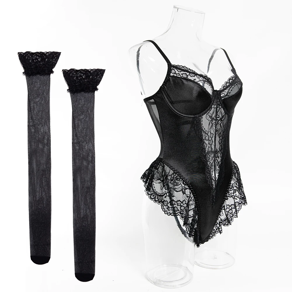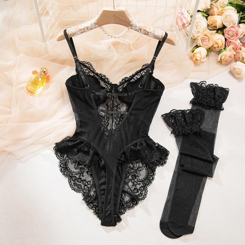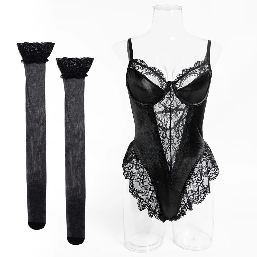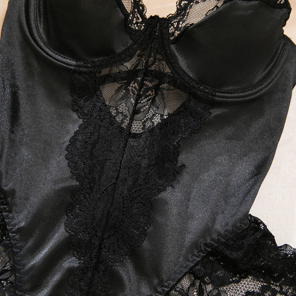 Shiny Sexy Female Lingerie Porno Backless Lace Splicing Bodysuit Seductive Dancer Party Clubwear Woman Clothing