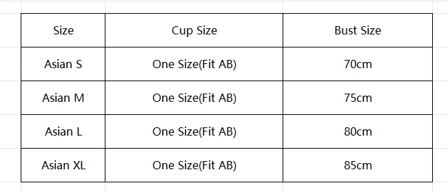 | Bands Size | L for Cup AB, M for Cup AB, S for Cup AB, XL for Cup AB |