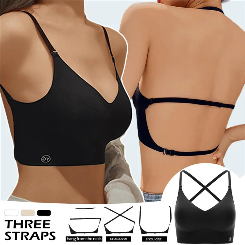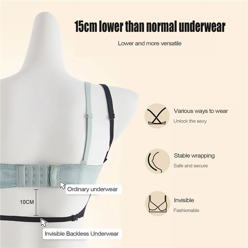 New Retro Invisible Push Up Bra Backless Women Bras Low Cut Sexy Plunge Brassiere Open Back Underwear Seamless Deep U Lingerie