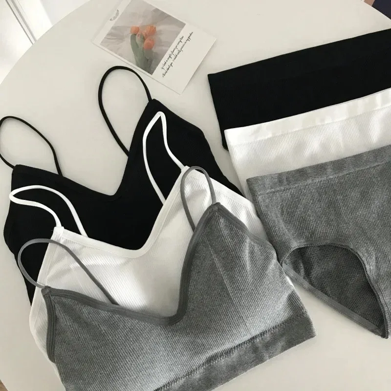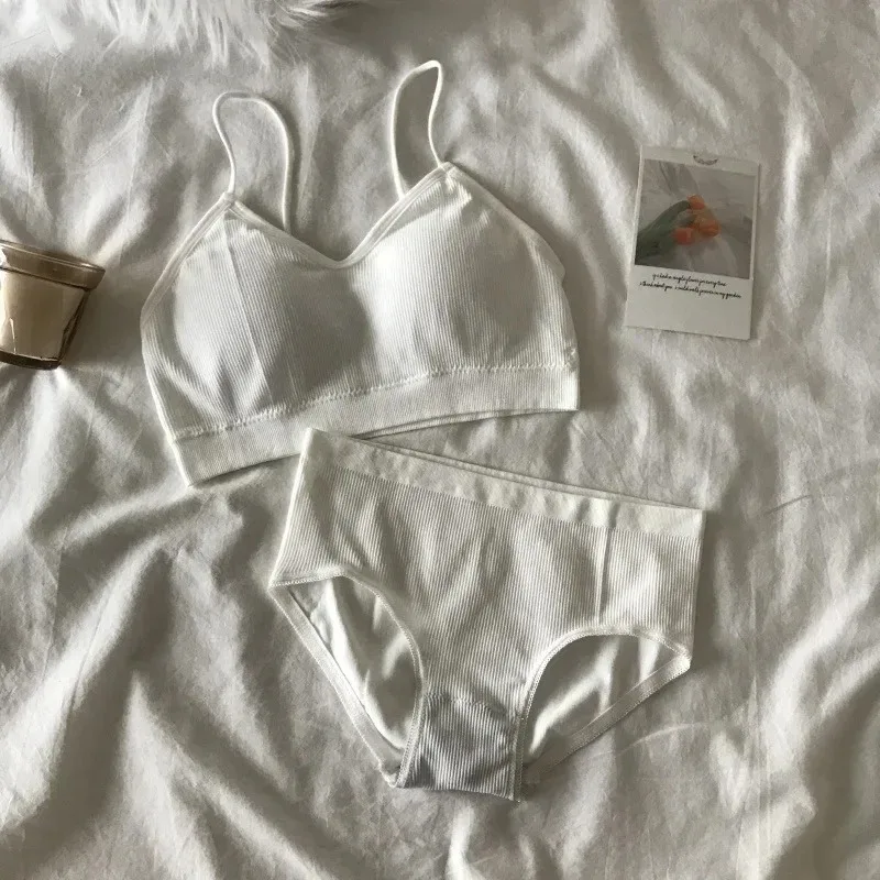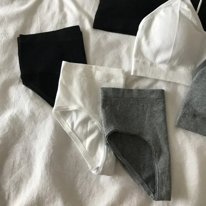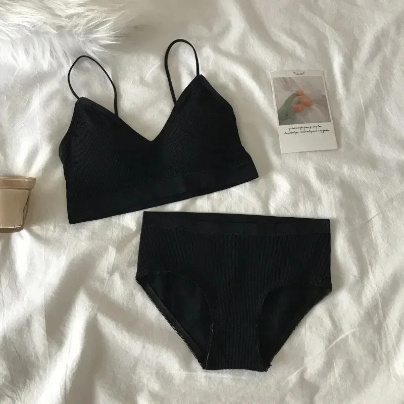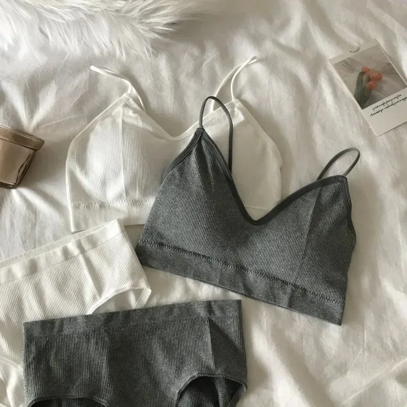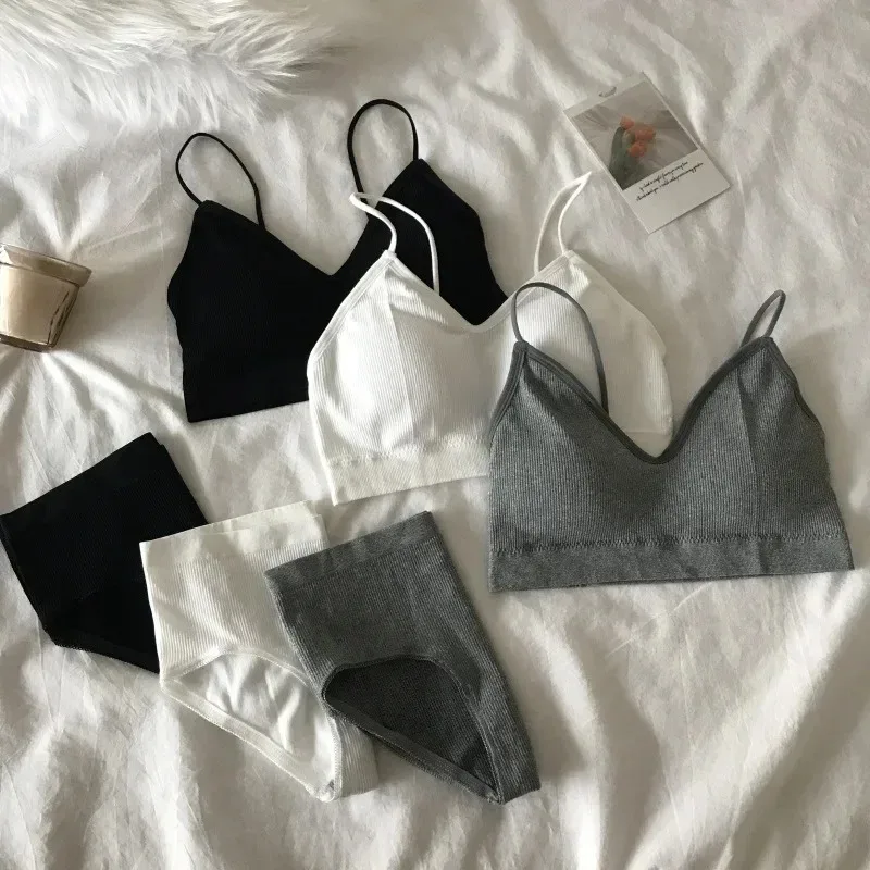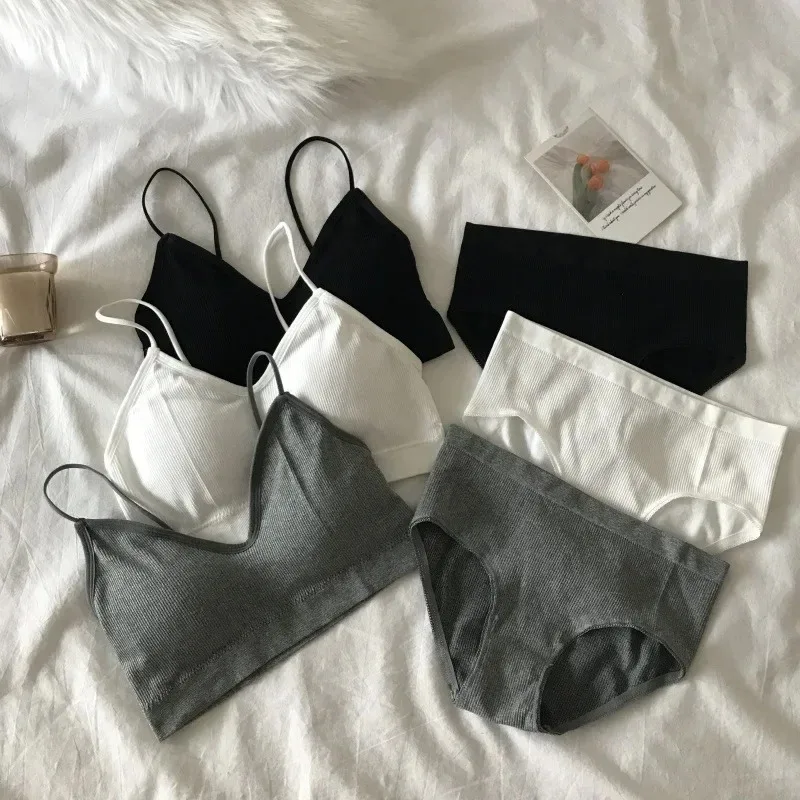 Women’s Sports Bra Set Underwear Bra Korean Style Push Up No Steel Ring Bra Sexy Tube Top High Elastic Panty Set